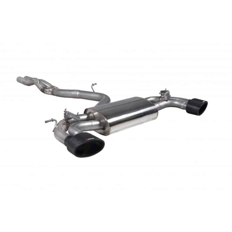 A cat-back exhaust system replaces the exhaust components from the catalytic converter to the exhaust tip, while an axle-back system includes components from the rear axle to the exhaust tip. Cat-back systems often provide more comprehensive performance gains.