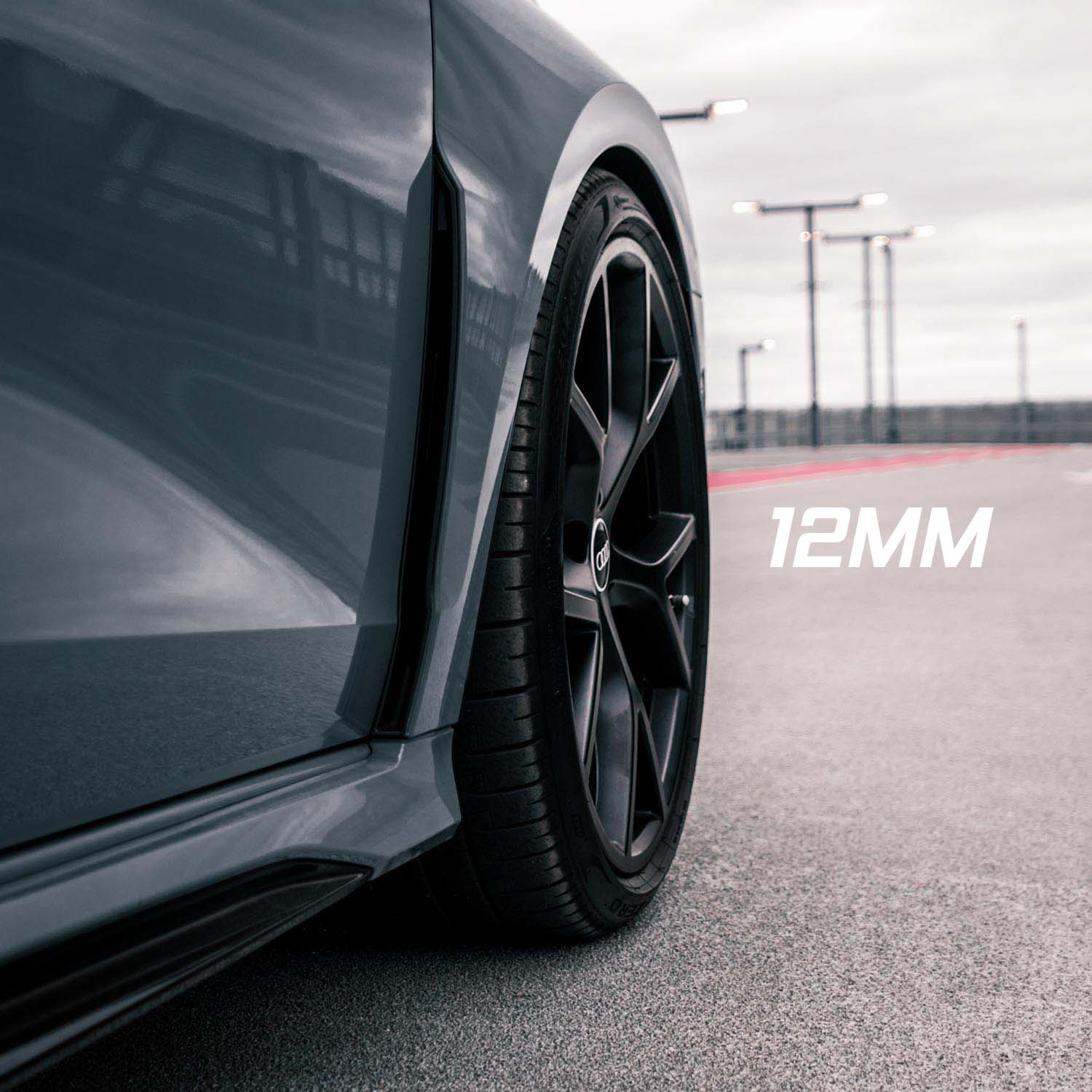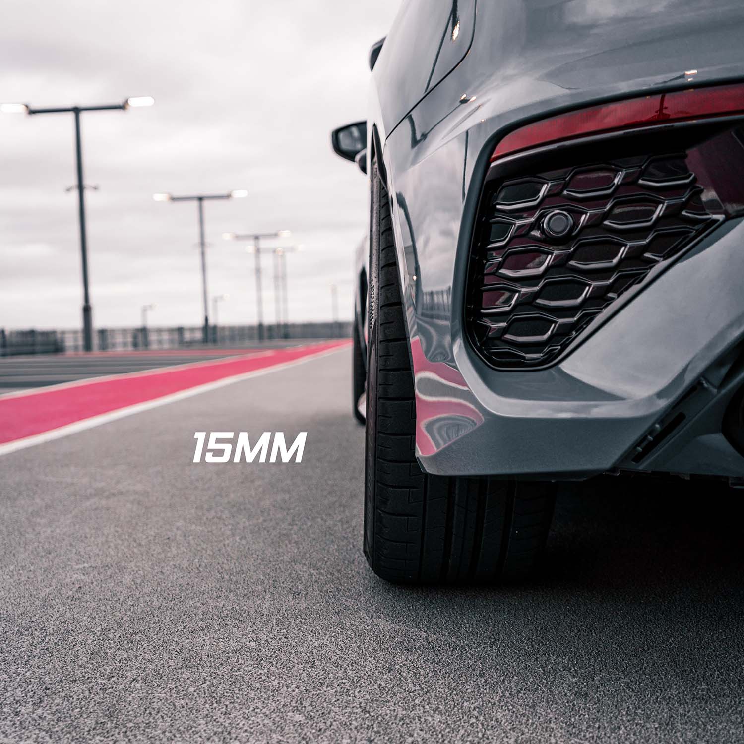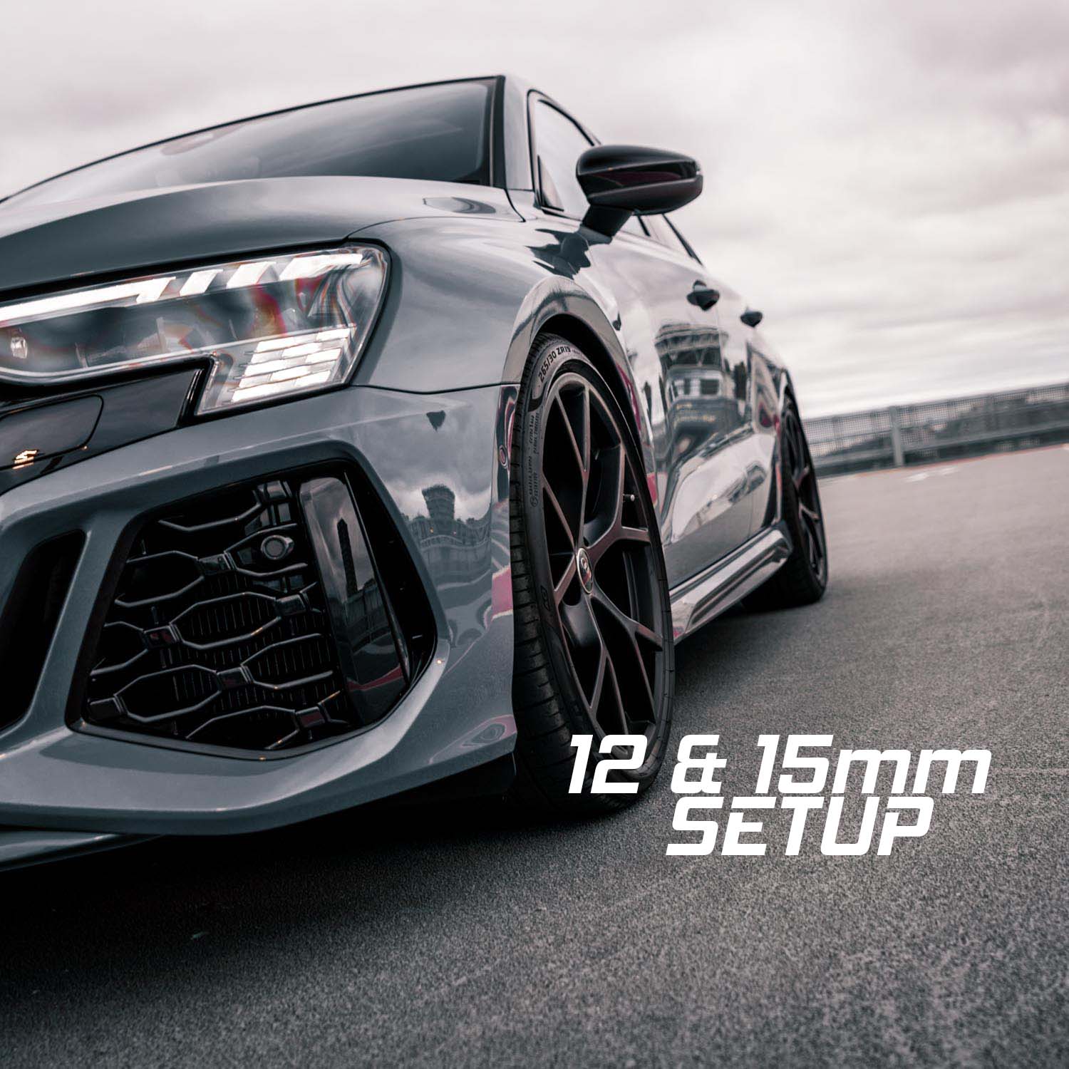 Audi hub-centric wheel spacers are a great way to add a wider-looking stance to your car and fill the wheel arches. Made from high-quality aluminium they are highly durable but still lightweight. Our recommendation for the RS3 8Y Sportsback and Saloon inc all factory options. OEM+ Look 12MM Front / 15MM Rear Aggressive OEM++ 15MM Front / 20MM Rear WEIGHT – 2.4 kg bolts + spacers- Spacers 1.7 kg DISCLAIMER Before Wheel Spacers and supplied Bolts are shipped to the customer, we check that they will be suitable for your vehicle. During installation, you must check that they are suitable for your vehicle and that the bolts supplied are correct. R44 Performance cannot be held liable if an issue occurs and it was not reported to us beforehand. PRODUCT SPECIFICATION -Machined from Aluminium with black zinc coating added for durability-Lightweight and durable-Specifically designed for the latest Audi vehicles-5 X 112 PCD-57.1 Centre Bore -TUV Approved-4 sizes available; 10mm, 12mm, 15mm & 20mm-Bolts: Radius R13 M14 x 1.5 COMPATIBILITY All Audi Models with 57.1 centre bore KIT DETAILS 2x / 4x Hub-centric wheel spacers 8x /16x Extended black wheel bolts2x / 4x Locking wheel bolts1x Locking Key