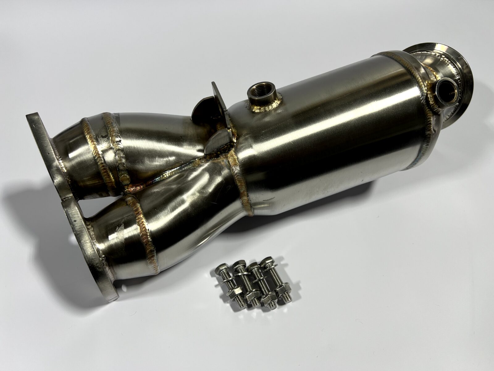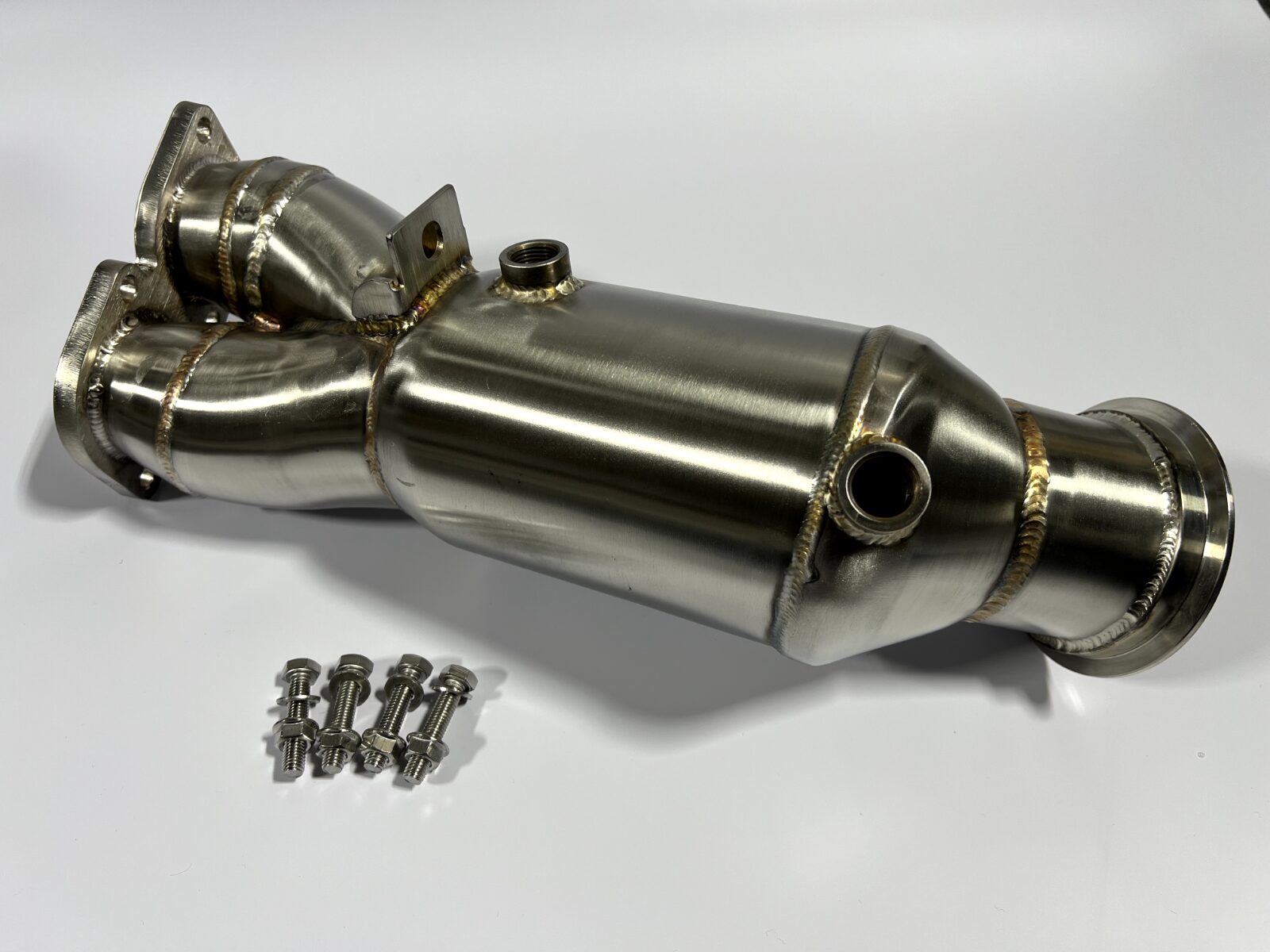 BMW 135I N55 DECAT DOWNPIPE E82 E88 2011-2012 200 CELL HI-FLOW SPORTS CAT This decat will fit early E Chassis N55 engines from 2011-2012. The BMW 135i downpipe is machined from T304 high-grade stainless steel and are tig welded in house The decat is fabricated in the UK and the flanges are laser cut between 10-12mm Sharper throttle response due to faster spool of the turbo Noticeable power gains and a much more aggressive exhaust note which sounds truly amazing Produces lower temperatures and less exhaust backpressure due to the relief of the turbocharger. Also, the cylinder charge is increased There is also a substantial weight saving in comparison to the factory catalytic converter Mandrel-bent for better gas flow and maximum internal size to ensure ultimate performance without the loss of mid-range torque. This decat will fit the following models: BMW 1 Series E82 E88 – 135i N55 Engine 2011-2012 BMW 3 Series E90 E91 E92 E93 – 335i N55 Engine 2011-2012 We have tested this product and found increases of 12-17bhp. Professional installation is recommended as some exhausts sit slightly different from others and can be tight although the feedback we have received from this product is that it is very easy to fit. We also recommend purchasing a Lambda Sensor Spacer(s) to prevent the engine light coming on in most cases. If you search our other items you will find these. This product comes with lifetime warranty. This should pass an MOT emissions test when fitted. They are road legal and Euro 5 rated.