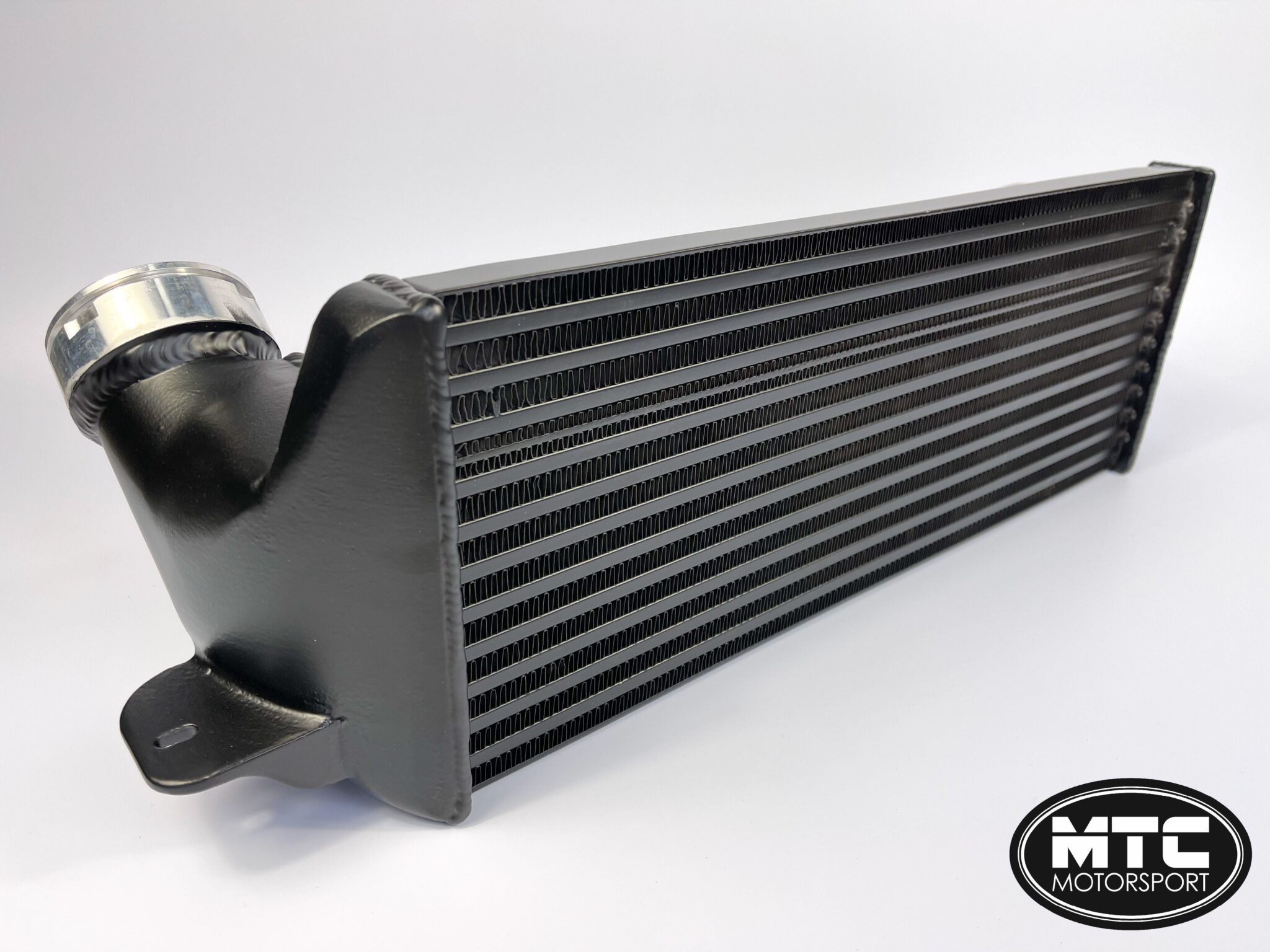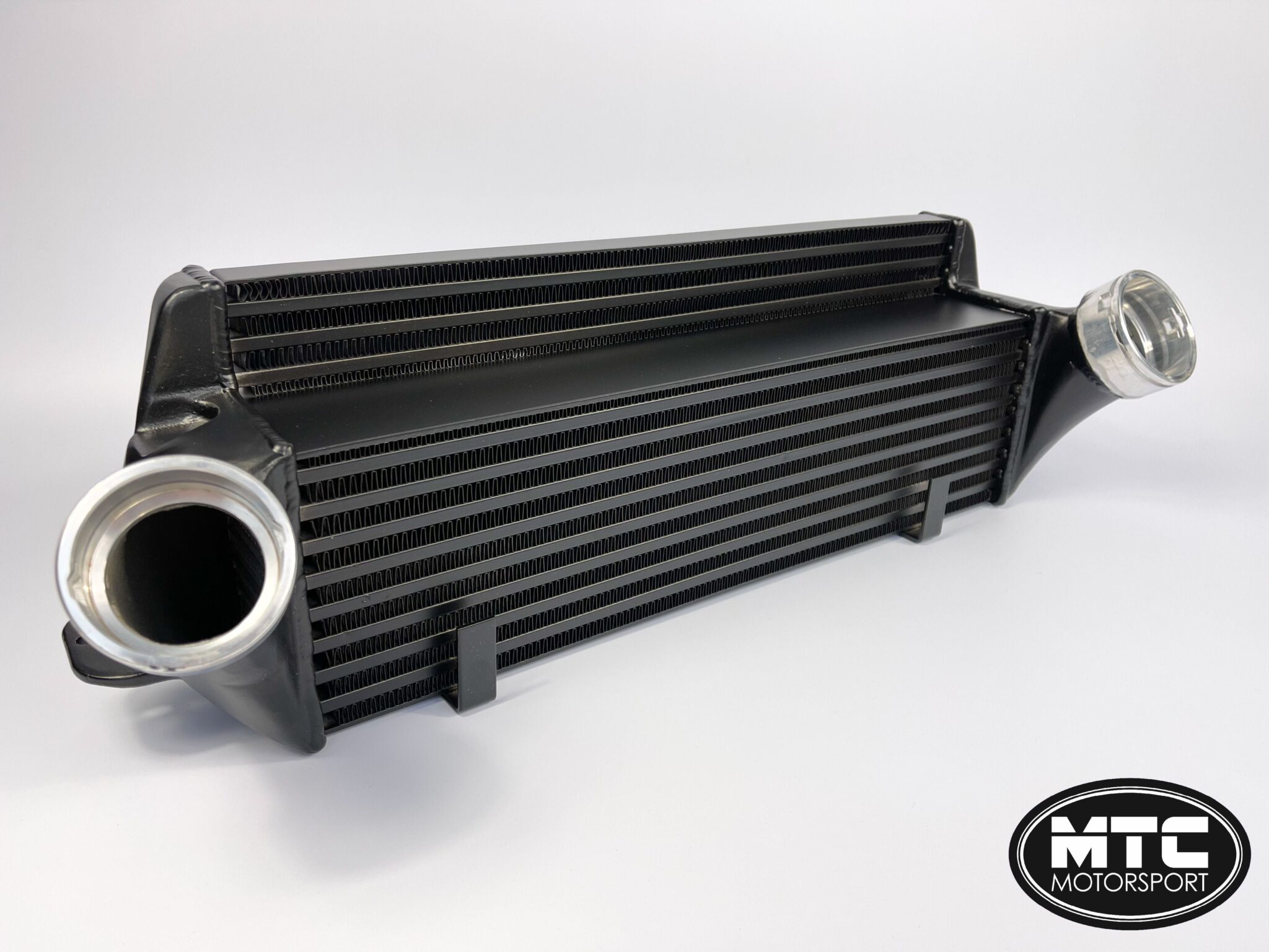 MTC Motorsport E90-E93 N47 BMW 320d Intercooler The intercooler end tanks were designed on a CAD programme for the best flow possible and cast in alloy. They also have the BMW fittings welded to the end tanks so will fit to the standard hoses perfectly. The size of the core is 520mm x 200mm x 100mm and it is stepped up at the front for maximum surface area which is nearly 100% bigger the standard intercooler. The intercooler is plug and play and is ready to be fitted to the car with no cutting or modifying required. This can be fitted without taking the bumper off. Finished powder coated in black. We have engineered these intercoolers using a tube and fin core matched to our flowed cast end tanks to create a very lightweight replacement with 40% more internal area and 90% more front surface area. It will fit the following N47 models perfectly: BMW 120d/123d E90/91/92/93 (2005-2011) BMW 320d E90/91/92/93 (2005-2011) The intercooler will flow 350bhp and 35 psi without any issues.This is the best intercooler on the market without a doubt, with a much lower price tag.