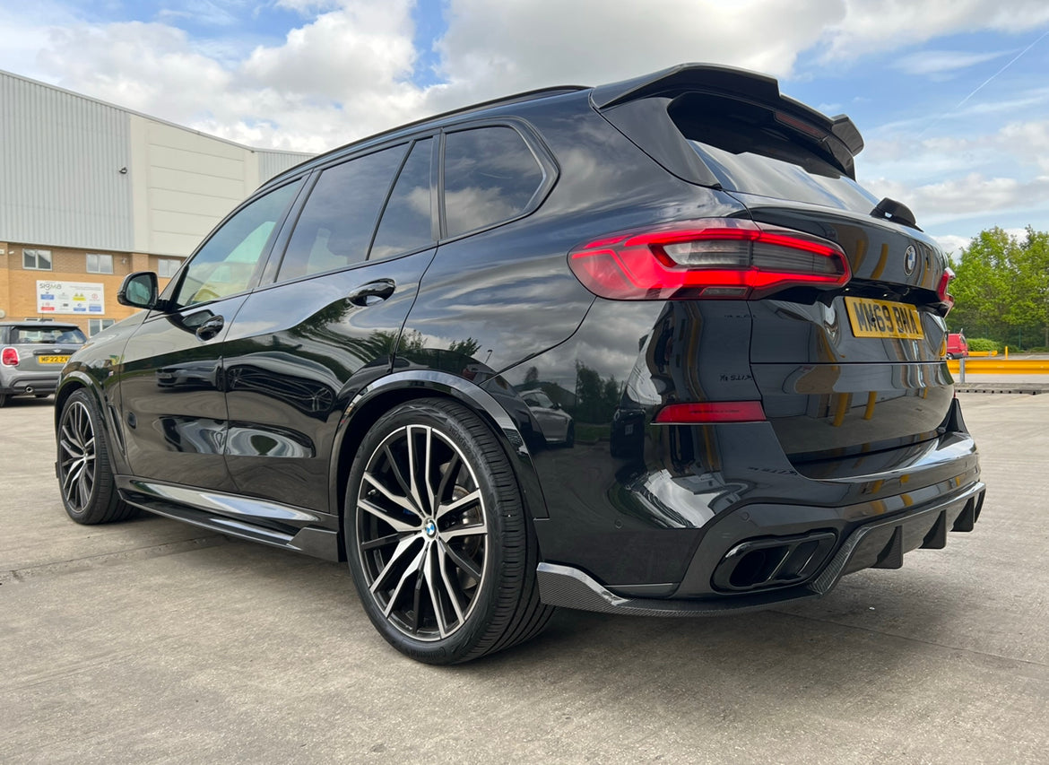 Our products are compatible with all X5 G05 series 2019+ Full Performance Style Kit Includes: Front Splitter Rear Diffuser Side Extensions Roof Spoiler Available in Gloss and Carbon Fibre. If you require fitting, be sure to select “Included” prior to checkout! If you require delivery only, be sure to select “Excluded” prior to checkout!