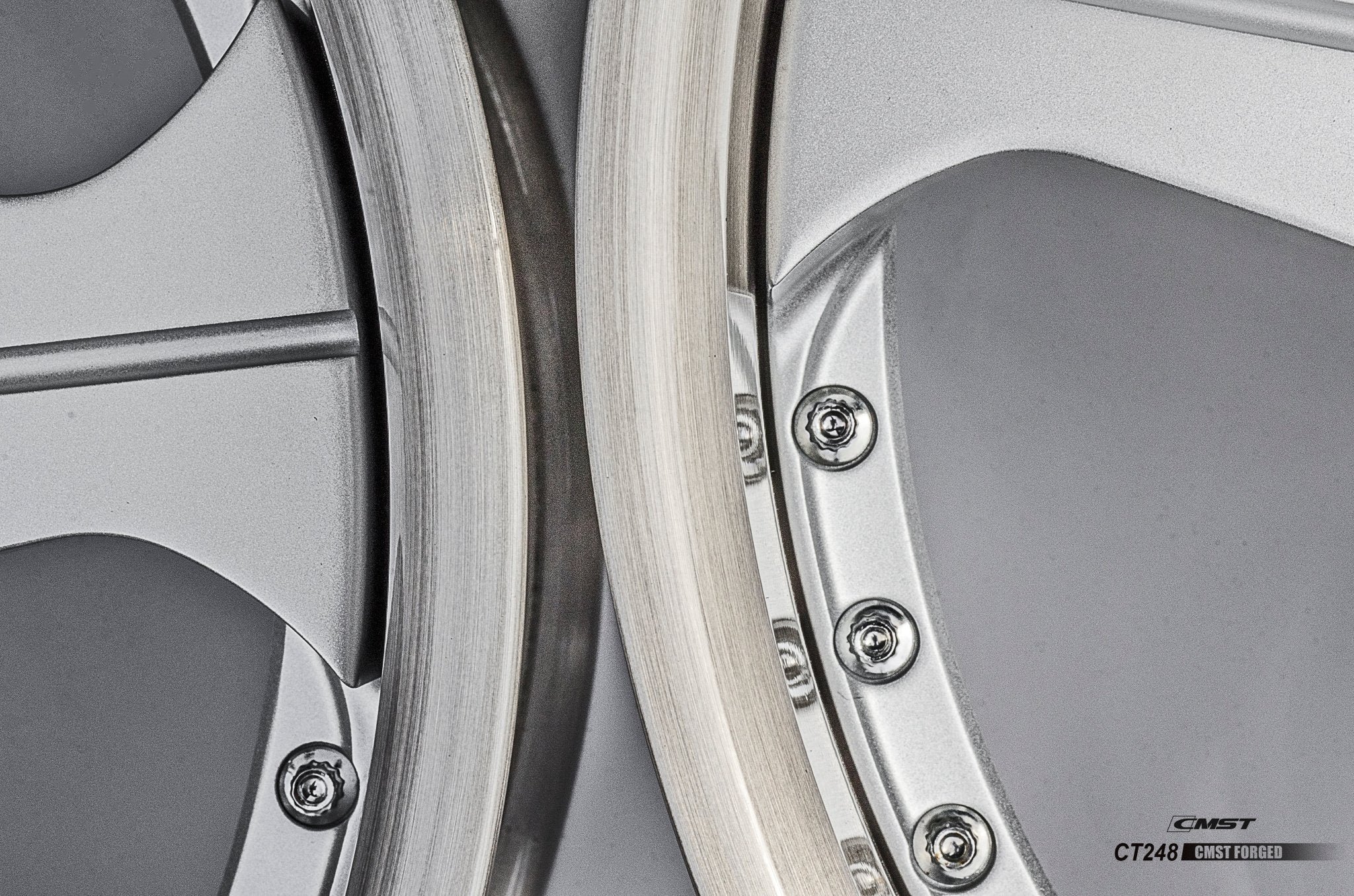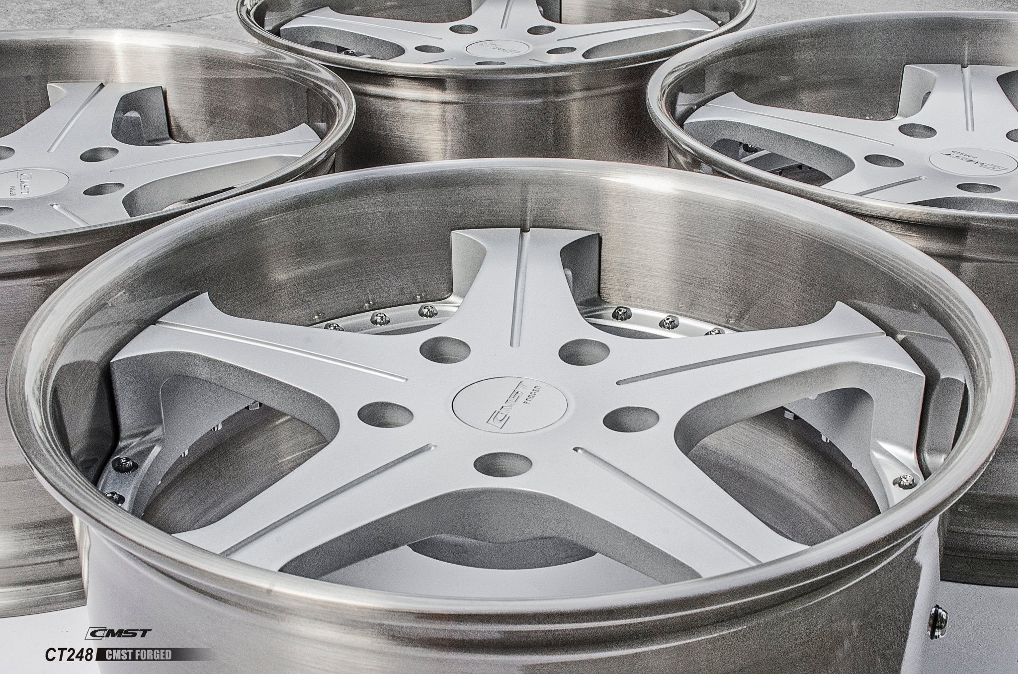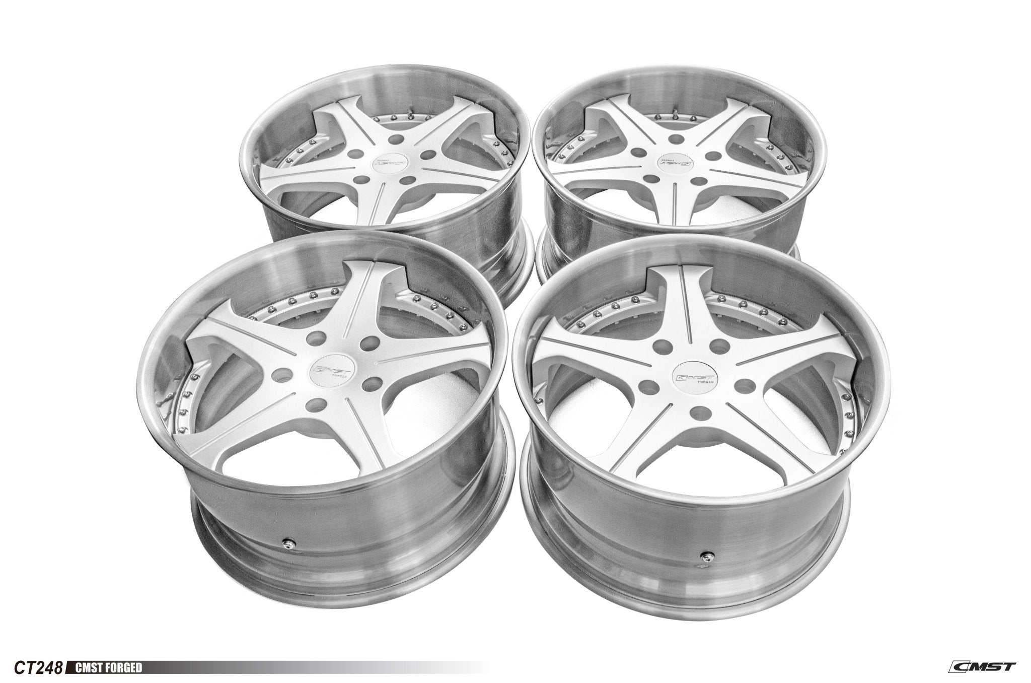 Thank you for your interest in our custom CMST Forged wheels. Each set is unique and made to order. You can design your 1 of 1 forged wheel that best fits your taste. Exclusivity is guaranteed. The designing and production of wheels are carried out in accordance with the most stringent international quality standards. The wheels are made exclusively from high quality aircraft aluminum of 6061-T06 grade. At the moment, lead time is 4-5 weeks. We offer custom 1 piece and 2 piece forged wheels. Choose from our many colors options, brushed, fine polish, and chrome finish. Since January 2020, carbon fiber and forge carbon fiber finish is available as an option! The price listed on the product page is based on the size and structure. Additional charges for upgraded finishes. Monoblock or 2 piece (price as option selected) Diameter (price as option selected) Width (priced as option selected +$30 every half inch over 10 inches wide) Carbon Fiber Lip (Woven Carbon $220 / Forged Carbon $340) Carbon Fiber Inner Lip (Woven Carbon $220 / Forged Carbon $340) Brushed Finish ($40) Fine Polish ($50) Chrome ($100) Select from over 300 styles. To place an order, please first add the items to cart and check out, and then contact us and let us know your detailed preferences. Be sure to include your Name Order Number Style Bolt Pattern (center lock and center lock cover now available!) Size Width Offset Spokes Color Dish Color/Carbon Finish 1 Piece / 2 Piece