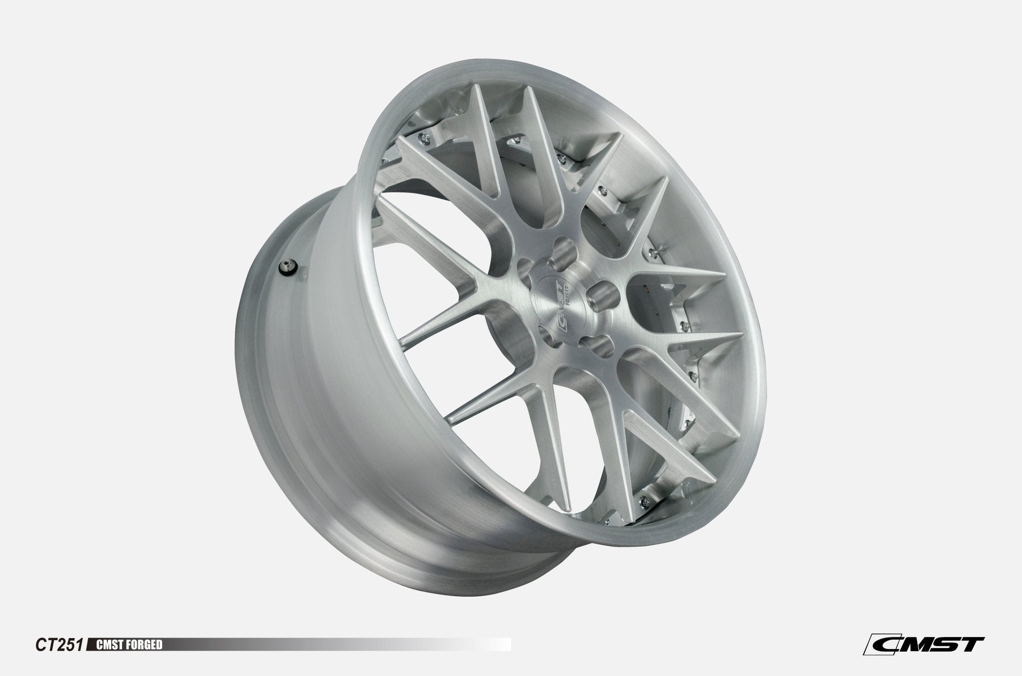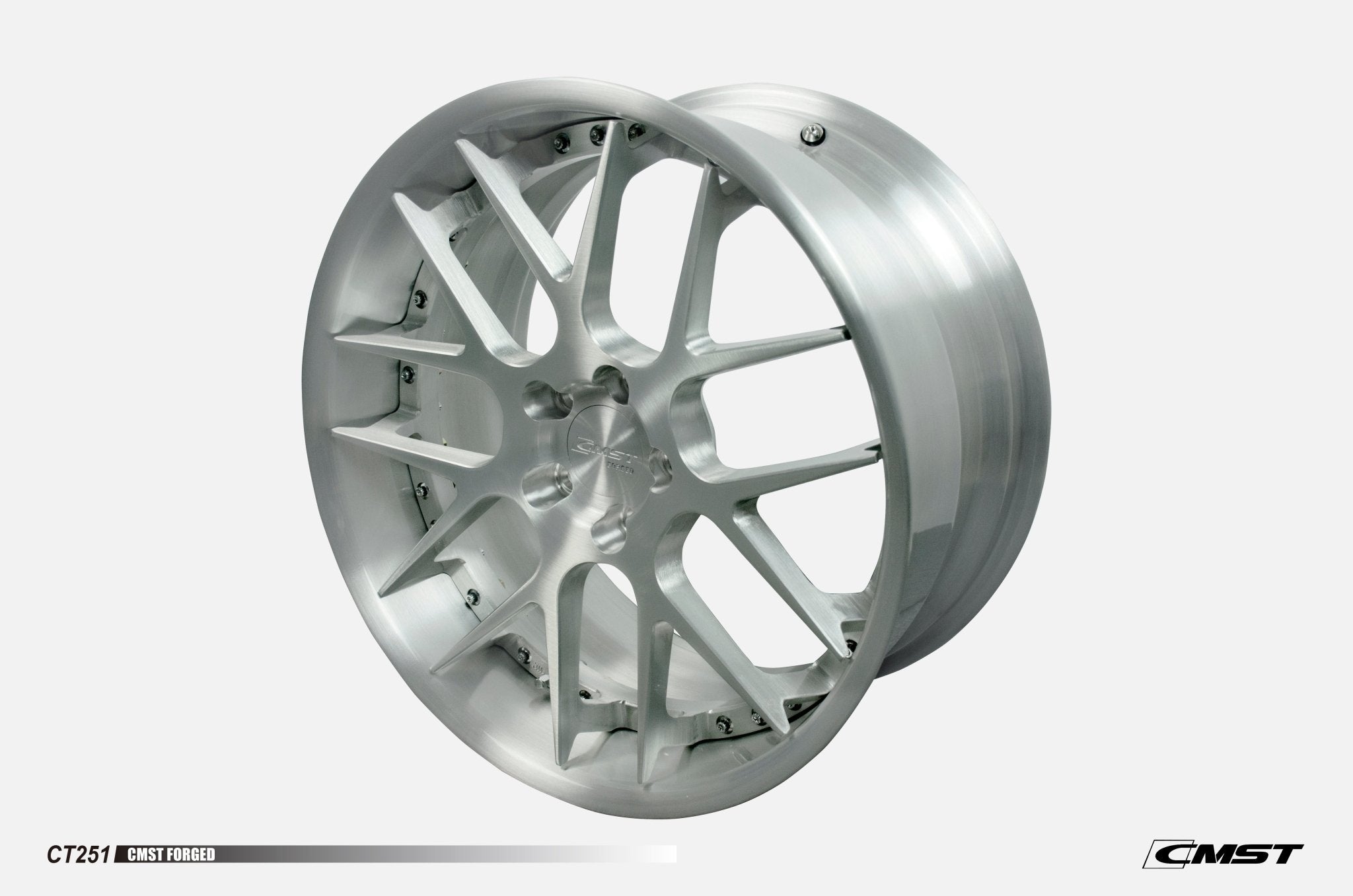 Thank you for your interest in our custom CMST Forged wheels. Each set is unique and made to order. You can design your 1 of 1 forged wheel that best fits your taste. Exclusivity is guaranteed. The designing and production of wheels are carried out in accordance with the most stringent international quality standards. The wheels are made exclusively from high quality aircraft aluminum of 6061-T06 grade. At the moment, lead time is 4-5 weeks. We offer custom 1 piece and 2 piece forged wheels. Choose from our many colors options, brushed, fine polish, and chrome finish. Since January 2020, carbon fiber and forge carbon fiber finish is available as an option! The price listed on the product page is based on the size and structure. Additional charges for upgraded finishes. Monoblock or 2 piece (price as option selected) Diameter (price as option selected) Width (priced as option selected +$30 every half inch over 10 inches wide) Carbon Fiber Lip (Woven Carbon $220 / Forged Carbon $340) Carbon Fiber Inner Lip (Woven Carbon $220 / Forged Carbon $340) Brushed Finish ($40) Fine Polish ($50) Chrome ($100) Select from over 300 styles. To place an order, please first add the items to cart and check out, and then contact us and let us know your detailed preferences. Be sure to include your Name Order Number Style Bolt Pattern (center lock and center lock cover now available!) Size Width Offset Spokes Color Dish Color/Carbon Finish 1 Piece / 2 Piece