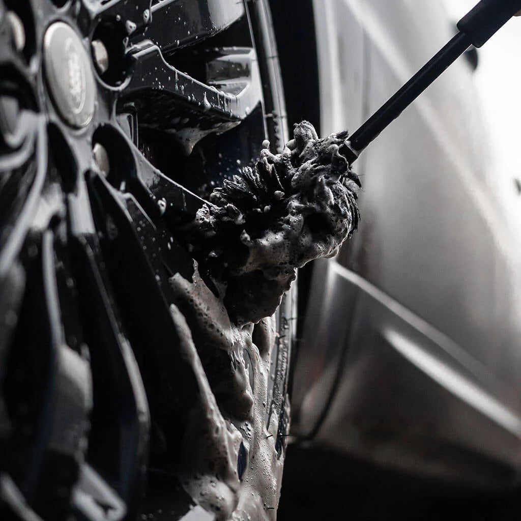 PRODUCT DESCRIPTION The Woolly Wheel Wand offers car care enthusiasts a luxurious solution when attempting to clean those hard to reach areas on alloy wheels and will reach all the way to the back of the wheel barrel. Tough on dirt, grime, and brake dust, yet gentle on painted, chrome, powder-coated, and polished wheels thanks to its super fluffy material. The Mammoth Woolly Wheel wand measures 45cm in length Care Instructions: Rinse the Woolly wand with clean water Squeeze excess water out of the wand with your hands Shake off any excess water and hang freely to dry naturally Do not leave the Woolly Wheel Wand wet after use.