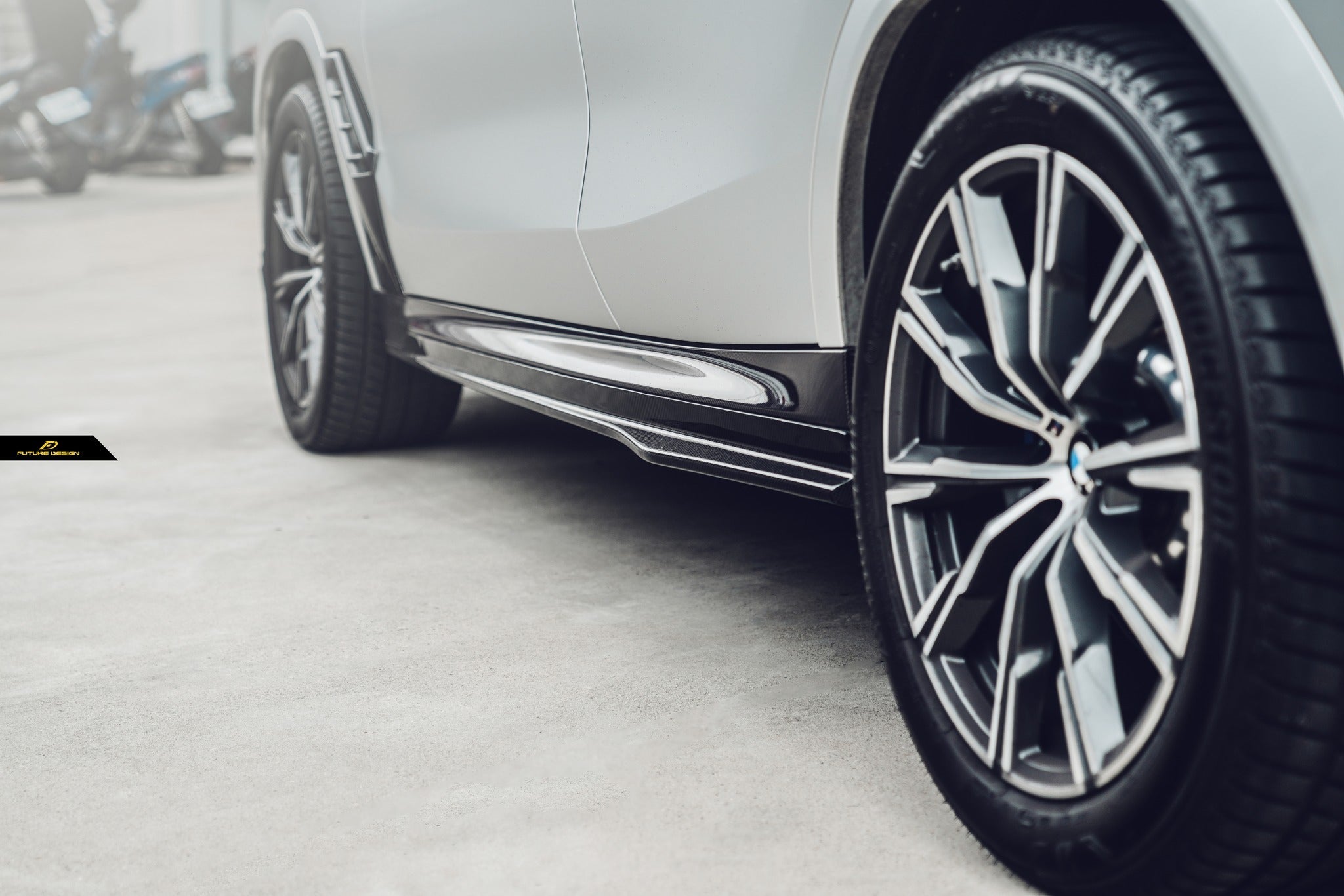 FUTURE DESIGN – BMW G06 X6 CARBON FIBRE SIDE SKIRTS ◆ Car Model : BMW G06 X6 ◆ Model Years : 2019- ◆ Material : Dry Carbon / Vacuum Infusion ◆ Installation : Add on / drilling screw & bolt *All carbon aerodynamic are made of high quality Japan carbon fiber material and clear coat finishing. With Dry Carbon / Vacuum Infuse Process, it tends to be stronger and lighter. Future Design provide all installation instruction, please contact us for any related issues If product is defective or damage upon arrival, or wrong product shipped, please contact us immediately. we will provide the replacement or refund. All carbon item with 6 months quality guarantee.