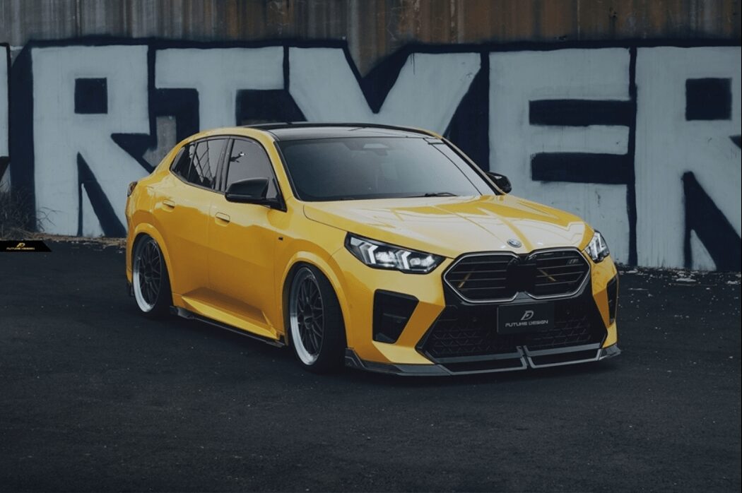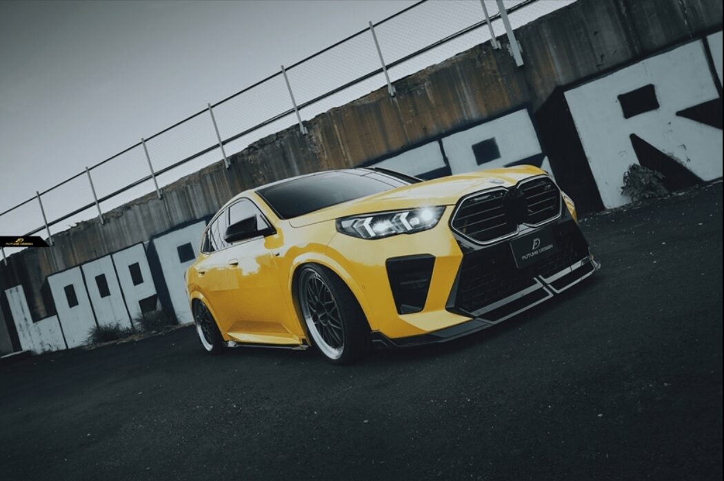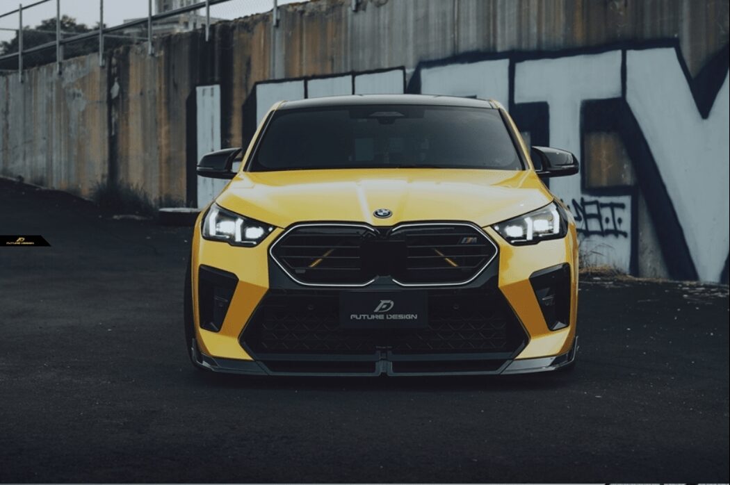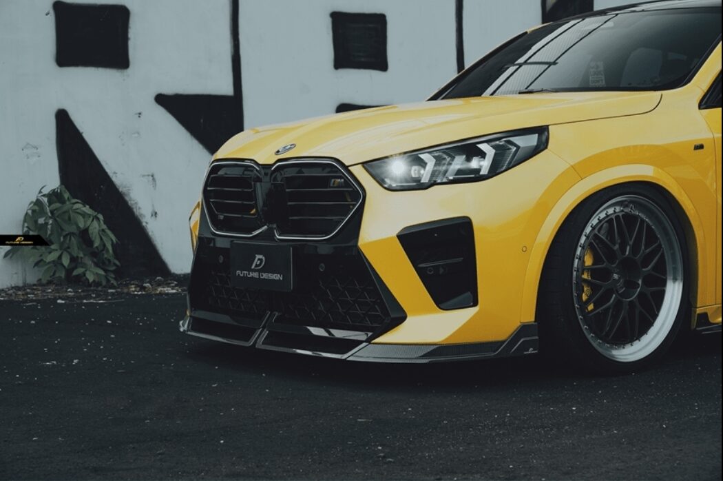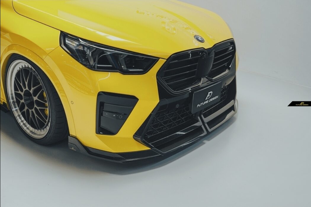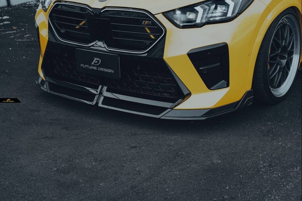 FUTURE DESIGN – BMW IX2 / X2 U10 DRY CARBON FRONT LIP V1 MANUFACTURER: FUTURE DESIGN MATERIAL : DRY CARBON FIBER FITS; BMW IX2 / X2 U10 2024+ (M SPORT LINE)