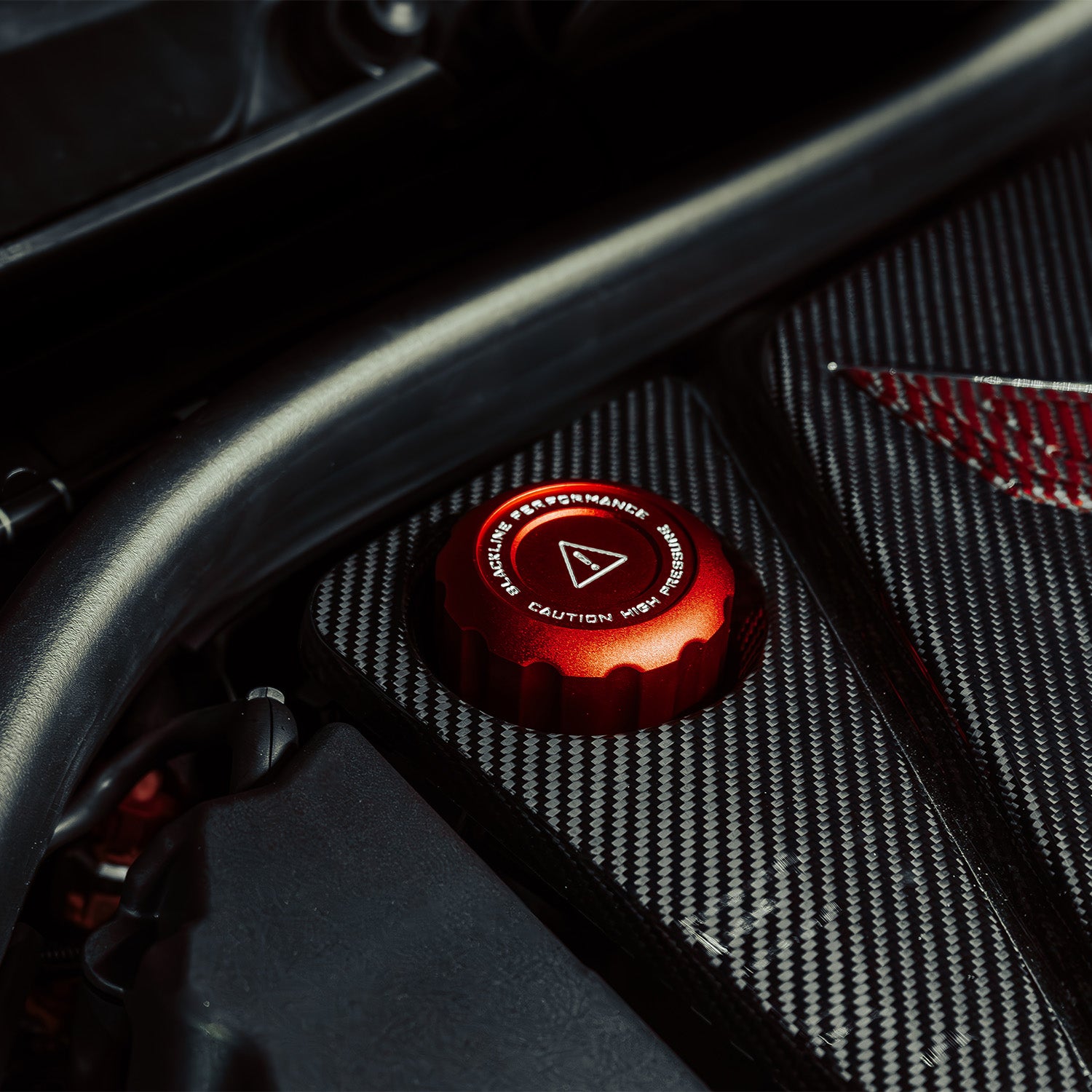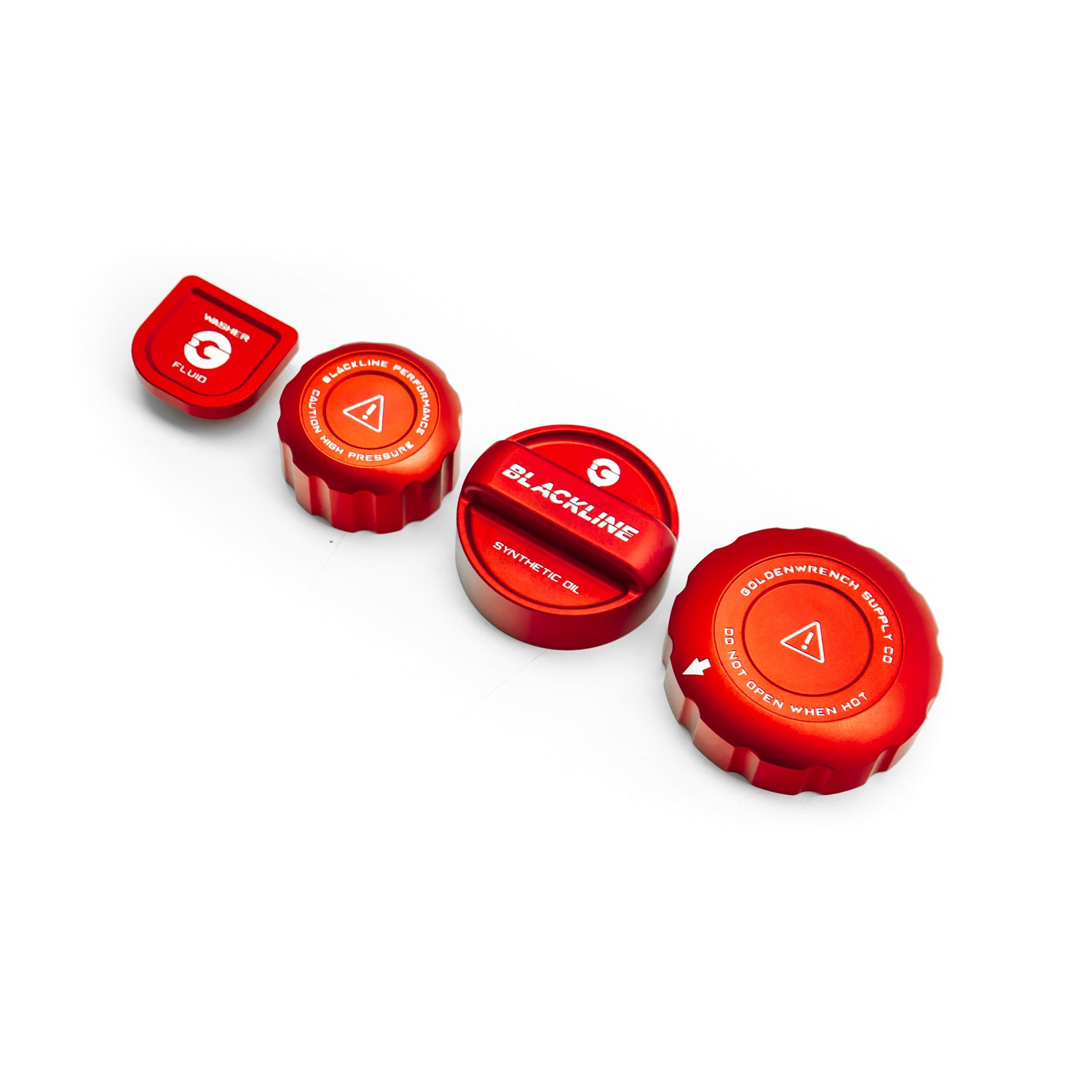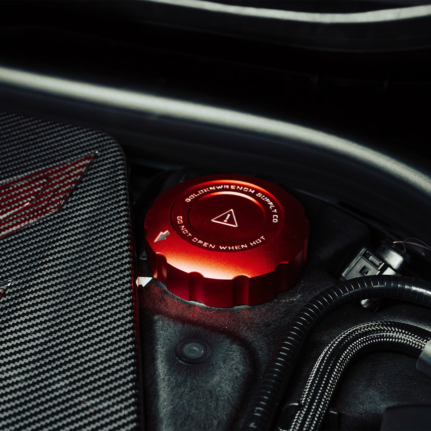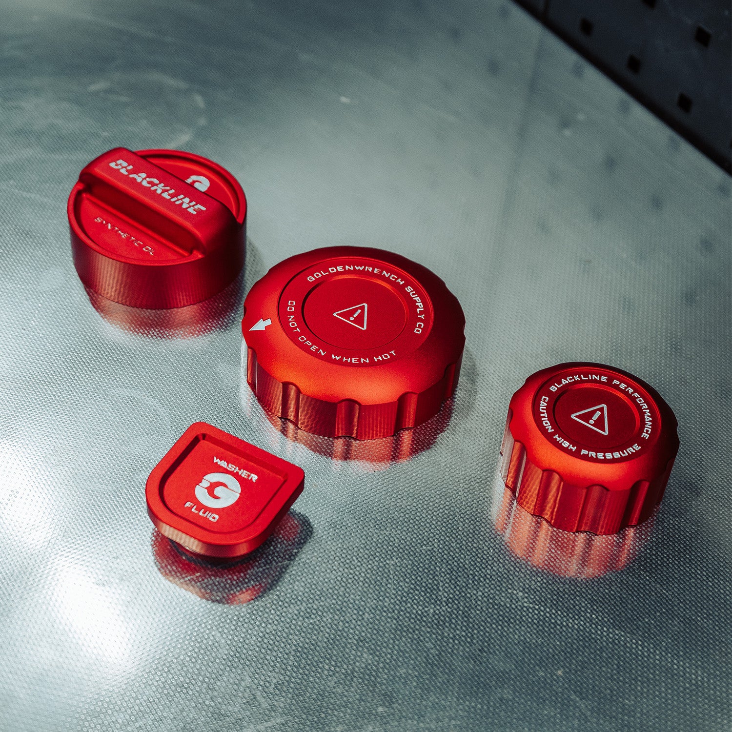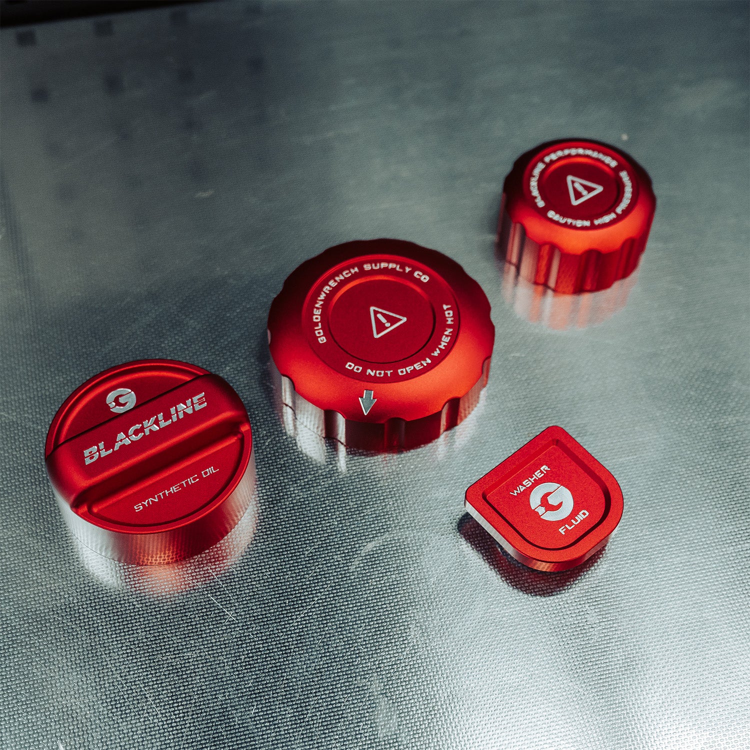 Upgrade your BMW’s engine bay with the GoldenWrench BLACKLINE Performance Engine Cap Cover Set, designed for S63 and S68 M-powered models, including the G90 M5, F95 X5M, F96 X6M, and more. Meticulously designed and created in-house to the highest precision and quality as seen on Goldenwrench’s other products, giving the factory units an all new form factor. We bring to you the newest addition to the BLACKLINE product family for the next generation of M Vehicles. Give the very plain plastic factory oil and coolant caps an upgrade with a brand new BLACKLINE Performance Engine Cap Set. Each cap is CNC formed from T6 Aluminium. All logos and decorations are finalised through our precision 3D milling process, machined into each cap for the ultimate premium finish. The BLACKLINE Performance Engine Cap Set will only fit S63 & S68 Engine model vehicles (e.g. G90/G99 M5, F95 X5M, F96 X6M etc.). Each cap set comes with a Billet Oil Cap Cover and Coolant Tank Cap Covers. These are not full cap replacements. The Billet Cap Covers attach to the top of your factory caps, installing easily in minutes. Product Specifications Manufactured from CNC machined T6 aluminium Anodised paint finish Available in red Compatible Vehicles BMW G90 M5 Saloon (2024+) BMW G99 M5 Touring (2025+) BMW F90 M5 (2018+) BMW F91/F92/F93 M8 (2018+) BMW F95 X5M SUV (2020+ BMW F96 X6M SUV (2020+) What’s In The Box? Each kit comes with an Installation Instruction Card. These are not full cap replacements. The Billet Cap Covers affix to the top of your factory caps, installing easily in minutes. You can also add the optional washer fluid cap before adding to cart.