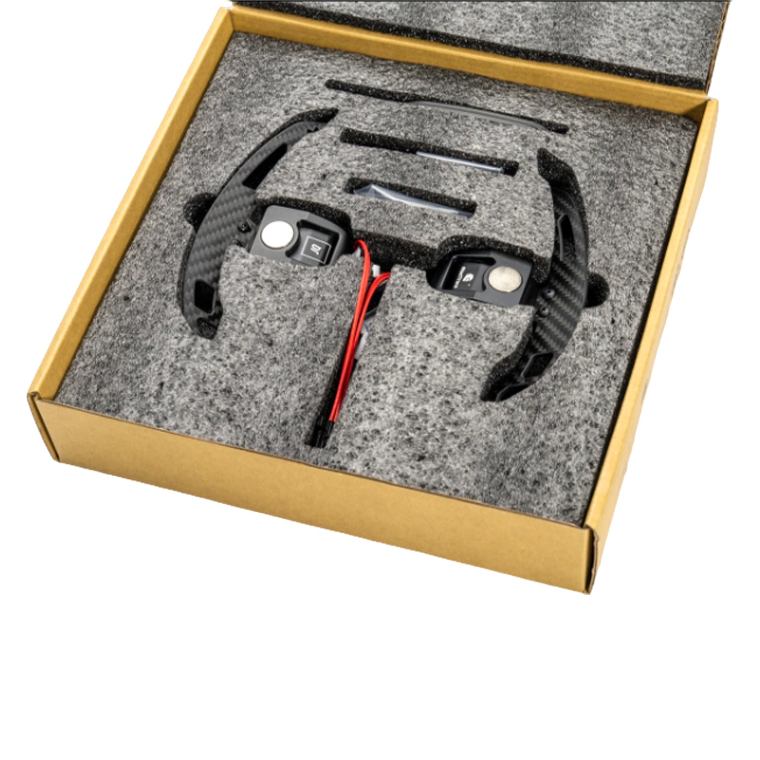JQ Werks Madtrace® Clubsport Magnetic Paddle Shifters will bring you a significantly more aggressive driving experience with an engineering design. The shifters are track oriented. It is built to make selecting gears clear and satisfying, no matter the steering angle. Due to their natural characteristics, the paddles will have a more robust and speedier snap back into positions. In addition, it makes a clean “click” noise every time you shift, making the ride more joyful. The JQ Werks Madtrace® Clubsport Magnetic Paddle Shifter System is manufactured from CNC machined 6061-T Grade Hard Anodized Billet Aluminium cage, Neodymium Magnet, and high-strength integrated 4mm-think Carbon Fibre plates. Optional Billet Aluminium Upgrade Available. FEATURES – Quickly snap back into place during shifts- Make a satisfying ‘click’ sound for a more engaging drive- CNC Machined 6061-T Grade Hard Anodized Billet Aluminium- 4mm-think Carbon Fibre plates- Neodymium Magnet- Plug & play- Designed for the BMW M Performance steering wheel COMPATIBILITY Mercedes AMG – A45/A35 AMG | W177/V177/Z177- Non-AMG A Class | W177/V177/Z177 (With AMG Steering Wheel) – AMG GT/GTC/GTS/GTR/GTBlack Series | C190/R190- AMG GT63/GT53/GT50/GT43 4-Door | X290- B Class | W247 (With AMG Steering Wheel)- C63/C43 AMG | W205/S205/C205/A205- Non-AMG C Class | W205/S205/C205/A205 (With AMG Steering Wheel)- CLA45/CLA35 AMG | C118/X118- Non-AMG CLA Class | C118/X118 (With AMG Steering Wheel)- CLS53 AMG | C257- Non-AMG CLS Class | C257 (With AMG Steering Wheel)- E63/E53/E43 AMG | W213/S213 (2016-2020 Pre Facelift Only)- Non-AMG E Class | W213/S213 (With AMG Steering Wheel, 2016-2020 Pre Facelift)- GLA45/GLA35 AMG | H247- Non-AMG GLA Class | H247 (With AMG Steering Wheel)- GLB35 AMG | X247- Non-AMG GLB Class | X247 (With AMG Steering Wheel)- GLC63/GLC43 AMG | X253/C253- Non-AMG GLC Class | X253/C253 (With AMG Steering Wheel)- GLE63/GLE53 AMG | W167/V167- Non-AMG GLE Class | W167/V167 (With AMG Steering Wheel)- GLS63 AMG/GLS600 Maybach | X167- Non-AMG GLS Class | X167 (With AMG Steering Wheel)- G63 AMG | W463A- Non-AMG G Class | W463A (With AMG Steering Wheel)- S65/S63 AMG/Maybach S Class | W222/V222/C217/A217- Non-AMG S Class | W222/V222/C217/A217 (With AMG Steering Wheel)- SL63 AMG | R231 (2017-2020, Facelift Only)- Non-AMG SL Class | R231 (With AMG Steering Wheel, 2017-2020, Facelift Only)- SLC43 AMG | R172 (2016-2020, Facelift Only)- Non-AMG SLK Class | R172 (With AMG Steering Wheel, 2016-2020, Facelift Only) WHAT’S IN THE BOX? – 2x Complete Magnetic Paddle Shifter Units.- 2x Formula-Style Carbon Fibre Paddles (Option with Carbon Fibre Paddles only)- 2x GT-Style Carbon Fibre Paddles (Option with Carbon Fibre Paddles only)- 2x CNC Machined Hard Anodized Billet Aluminium Paddles (Option with Aluminium Paddles only)- New Hardware For Steering Wheel Application- 1x Allen Key Warranty: Each product will come with a limited lifetime manufacture warranty against defects on the mechanisms ONLY, not chipboard or blemishes, cosmetics, or normal wear and tear for paddle shifters.