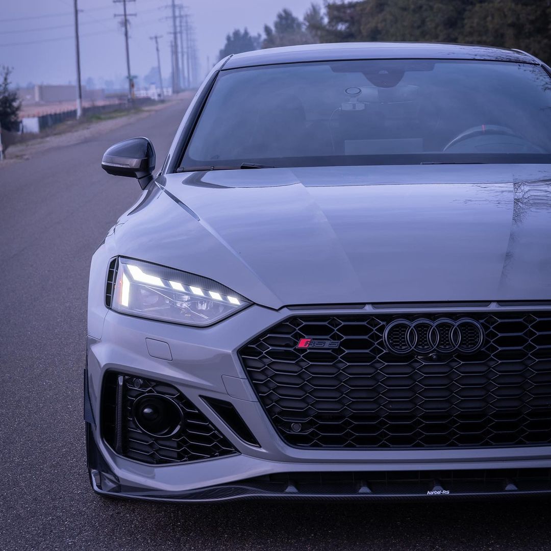 KARBEL – AUDI RS5 B9.5 CARBON FIBRE FULL BODY KIT MATERIAL – ALL PRODUCTS IN THIS KIT ARE MADE FROM DRY CARBON FIBRE FITS – AUDI RS5 B9.5 2020-ON KIT INCLUDES- FRONT LIP FRONT BUMPER CANARDS REAR DIFFUSER FOG LIGHT TRIM OVERLAY RADIATOR COOLING PLATE EYEBROWS HEAD LIGHT TRIM TAIL LIGHT TRIM SIDE SKIRT OVERLAY TRIM SIDE SKIRT EXTENSION TRIM REAR SPOILER