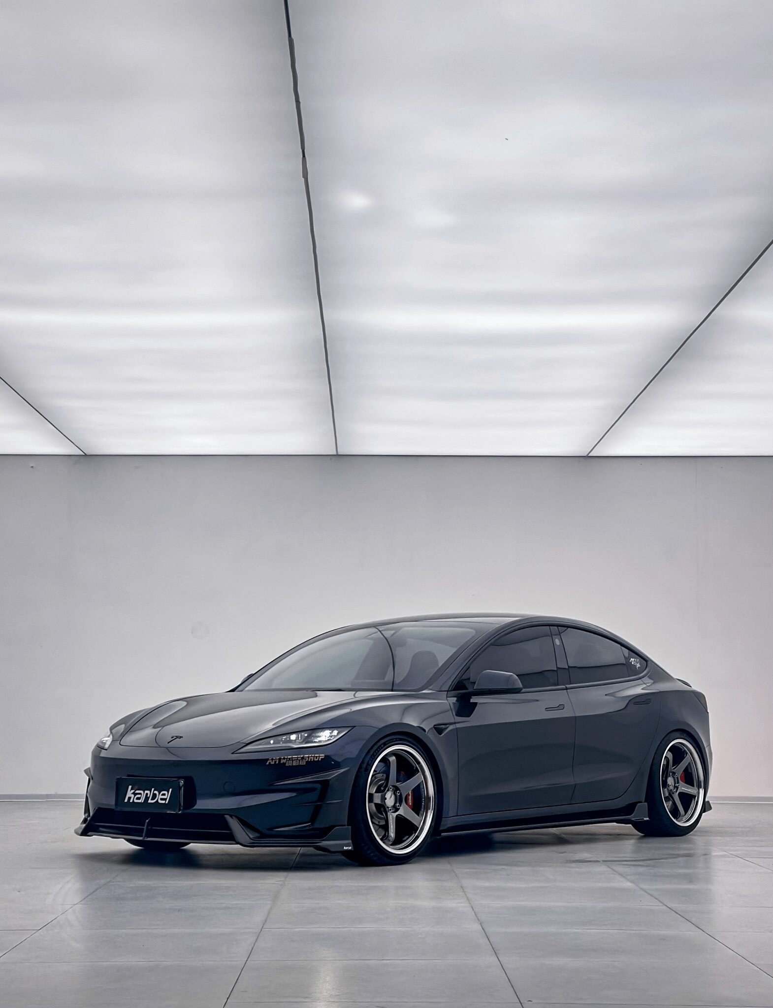 KARBEL – TESLA MODEL 3P PERFORMANCE HIGHLAND DRY CARBON FIBER FRONT LIP MANUFACTURER: KARBEL MATERIAL : DRY CARBON FIBER FITS: TESLA MODEL 3P PERFORMANCE HIGHLAND 2024+