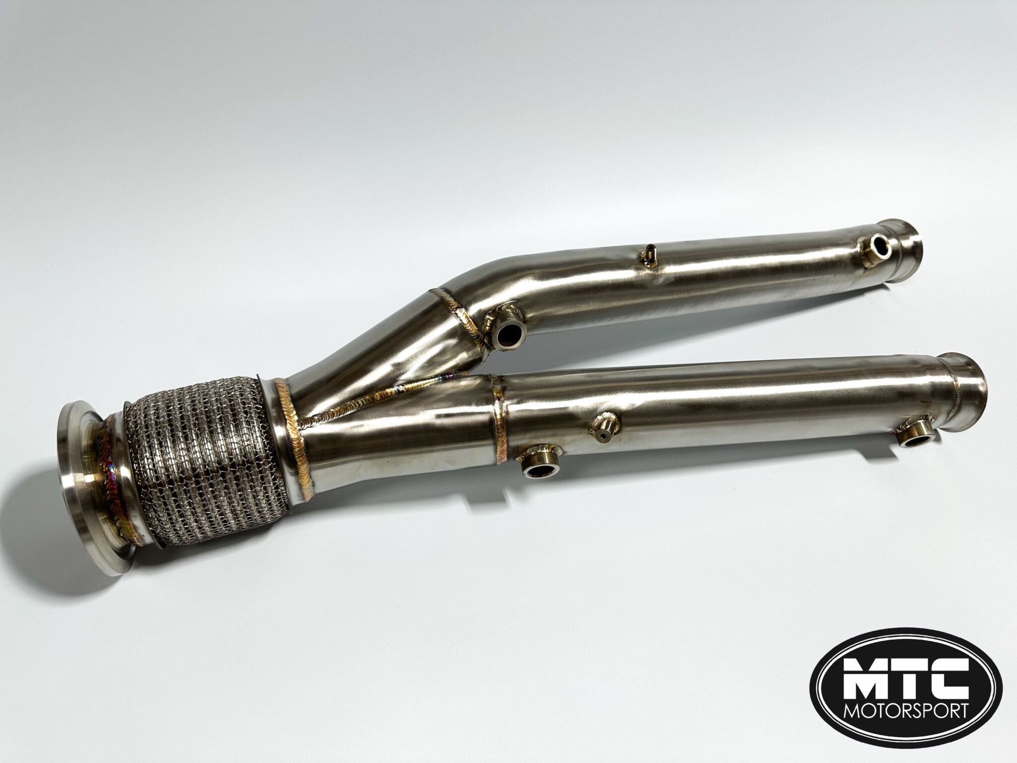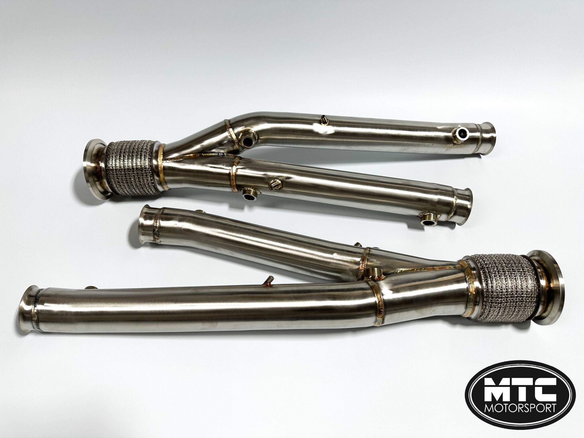 MTC Motorsport Lamborghini Aventador SVJ LP770 Decat Pipes 2018-2021 The SVJ downpipes and flanges are machined from SS304 aircraft-grade stainless steel and are a direct fit to the car These decats provide a sharper throttle response Mandrel-bent for better gas flow and maximum internal size to ensure no loss of mid-range torque There is also a substantial weight saving in comparison to the factory catalytic converter Finished in brushed stainless steel With these installed the car sounds much louder with the sports exhaust and definitely makes it more of an occasion to go out for a drive over the standard fairly quiet system. The standard heat shields don’t need to be installed with these as they don’t hold any heat. We didn’t want to lose the warranty on the car so we used 2 of our own stainless steel lambda spacers to keep the engine light off and didn’t tune the car. They work absolutely fine.