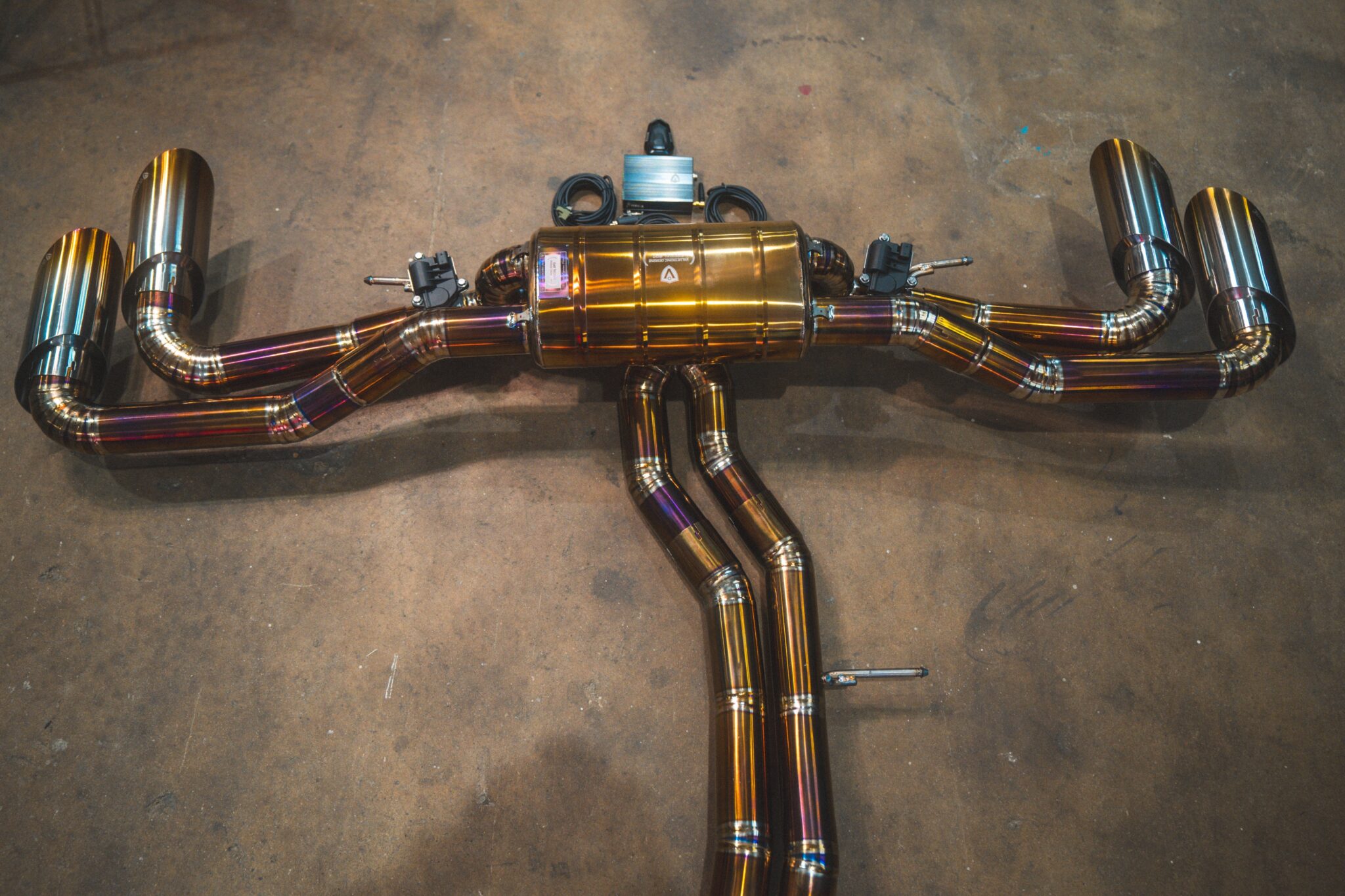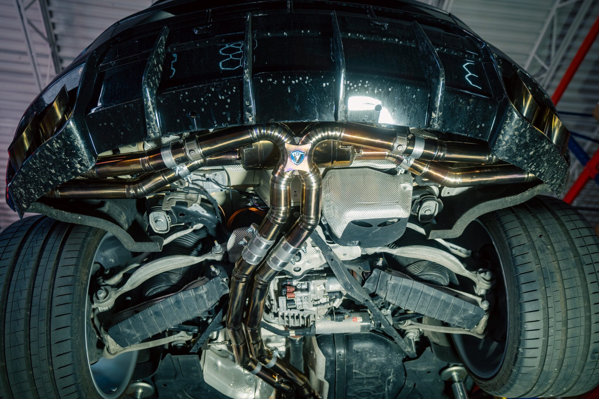 Welcome to the valved exhaust solution for the Lamborghini Urus Platform. Like many cars of today, the Urus has incredible capabilities but lacks in overall passion. Uncorking the beast with a full exhaust system unlocks great potential for this platform. The system measures 3 inches all the way back to a beautiful set of forged carbon fiber tips. With the valves closed this system retains factory-like exhaust levels for comfortable cruising. when operating in the valves open mode the silencer is fully bypassed giving this bull the set of lungs it deserves. An optional extra for this platform are our 200 cell sport downpipes or our free flow downpipes for those looking for even more performance and sound character. All systems are controlled Via OEM style exhaust valves for unparalleled longevity and flexibility. It’s time to take your bull to the next level. Fitment 2018 – 2024 Lamborghini Urus / S / Performante Features of this Exhaust Upgrade Constructed of the highest quality Grade 5 titanium 44.7 lbs lighter than the factory exhaust Fully Mandrel bend for maximum flow Exhaust valve integration into OEM valve connections Beautiful set of exhaust tips Precision tig welds for high strength 100% REVERSIBLE, always able to go back to stock at any time Connects to OEM downpipes