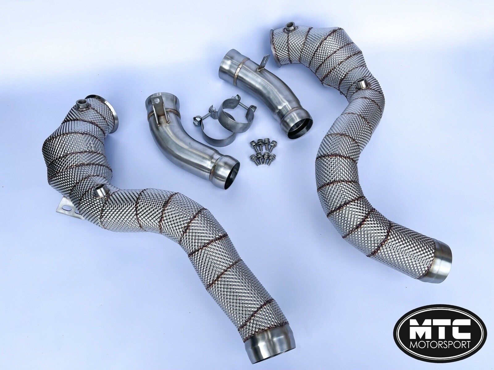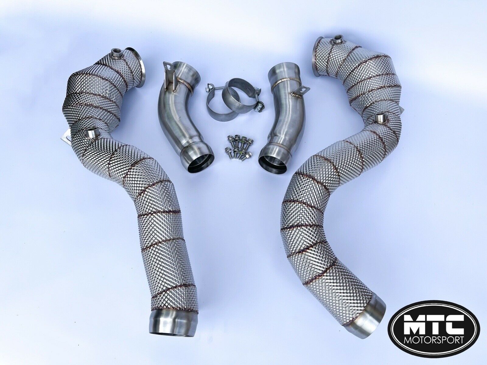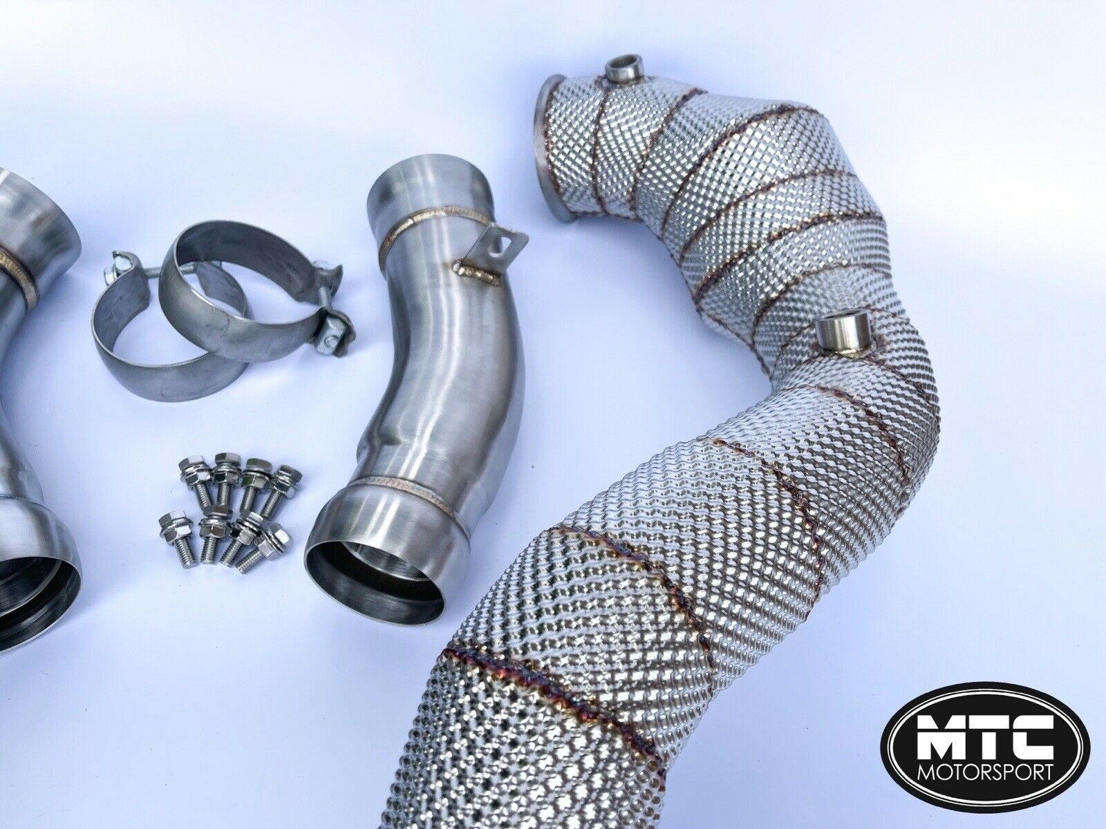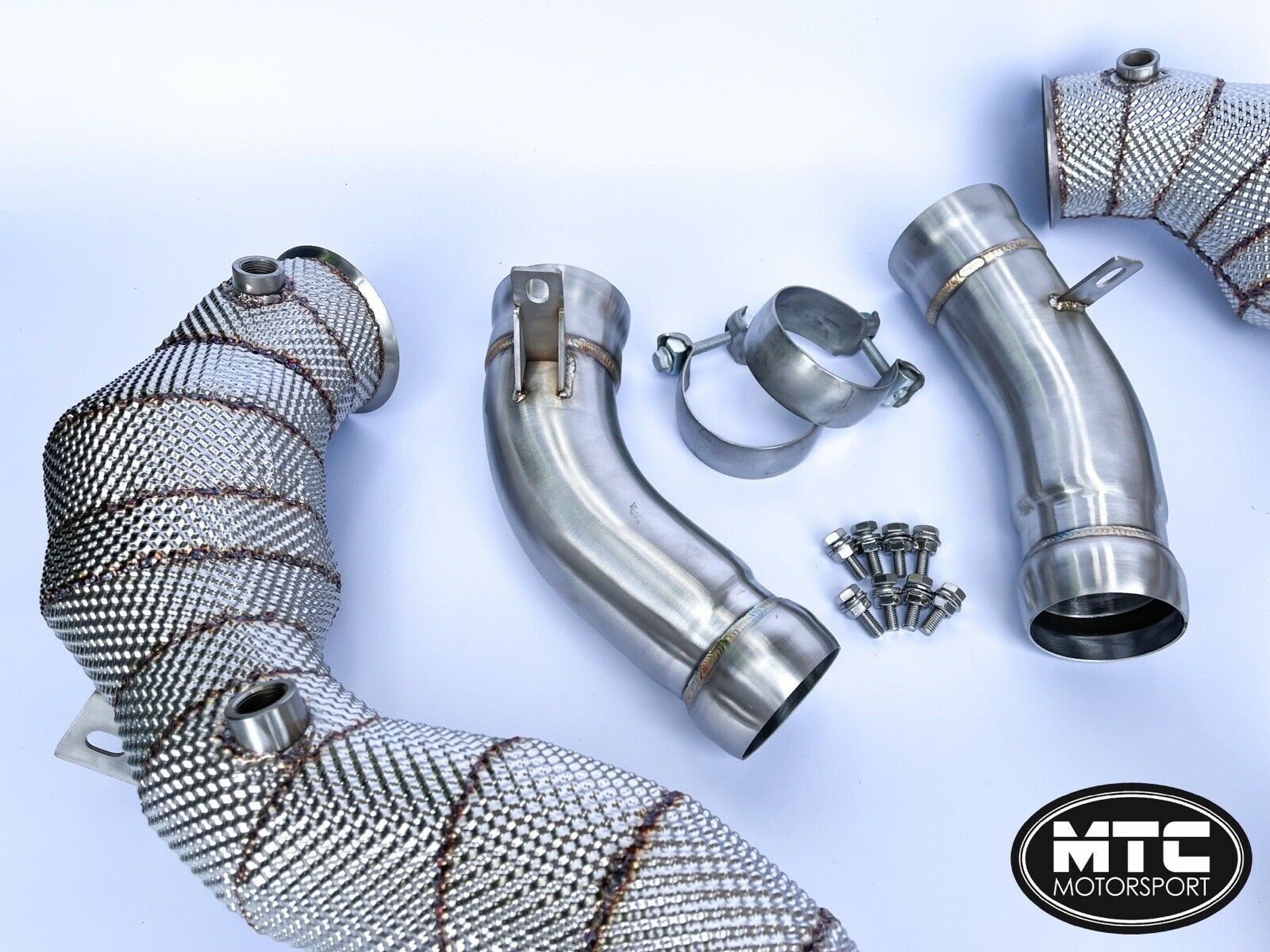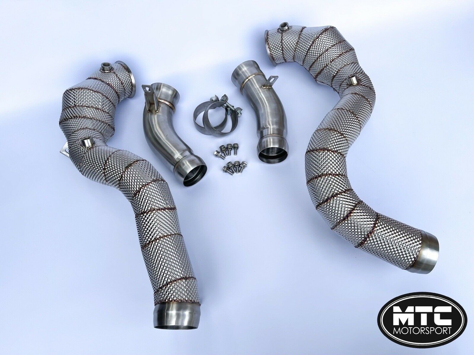 MTC Motorsport Mercedes GLC63S Stainless Steel Downpipes With Hi-Flow 200 Cell Sports Cat and Heat Shield The GLC63S downpipes are machined from T-304 high-grade stainless steel and are tig welded in house. Our downpipes come straight from the turbo providing a sharper throttle response due to a faster spool of the turbo. They will provide noticeable power gains and a much more aggressive exhaust note which sounds amazing. They produce lower temperatures and less exhaust backpressure due to the relief of the turbocharger. The cylinder charge is increased which gives you maximum performance. Finished in brushed stainless (with heat shield) These will fit the following models: Mercedes GLC63S GLC63 2017- We have tested this product and found increases of around 30-35bhp without tuning and 140bhp+ on a tuned car.Professional installation is recommended as some exhausts sit slightly different from others and can be tight. These should pass an MOT emissions test when fitted. They are road legal and Euro 5 rated. OPF may need to be coded out, worth speaking to a tuner before hand to check this with your car.