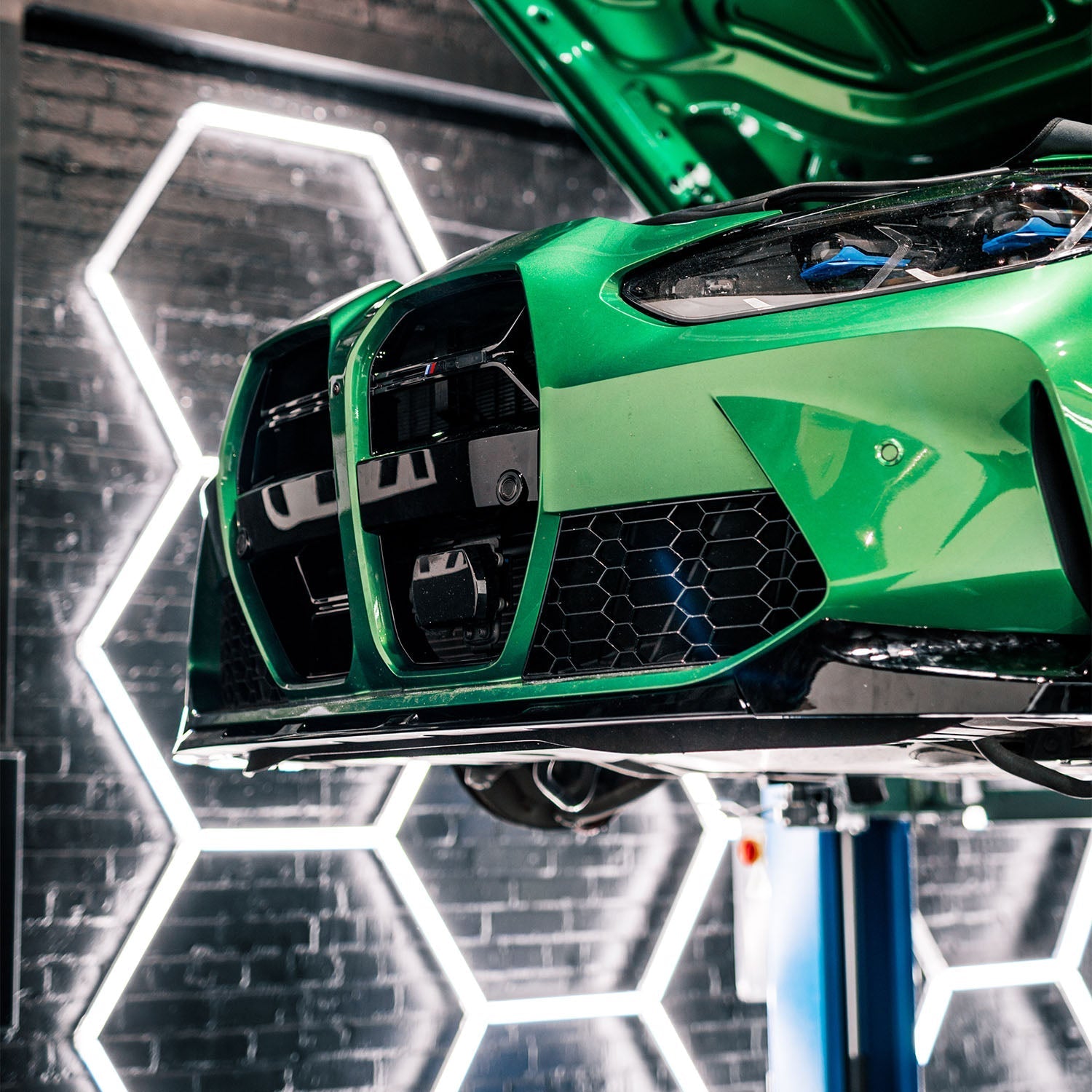 MHC Black BMW G80 G81 M3 and G82 G83 M4 Performance Style Front Splitter In Gloss Black is a beautiful OEM+ front lip designed to enhance the look of BMW’s G8X platform. With a BMW M Performance-inspired design, this splitter integrates seamlessly into the shape of the factory front bumper, adding extra aggression and increasing road presence. This is a far more cost effective front splitter option, compared to the pre-preg carbon fibre alternatives. The three piece design makes installation super easy and provides a perfect fitment every time – backed by our perfect fitment guarantee. To complete the look, we recommend combining this front splitter with the MHC Black performance style ducts. The combination of these items completely transforms the look of the G80/G81/G82/G83, giving it a more premium look over standard. To ensure a perfect fitment every time, this splitter was developed using 3D data scanning and aluminium moulds – backed by our perfect fitment guarantee. The product arrives ready to fit with 3M adhesive bonding strips pre-applied by us, as well as all necessary hardware for installation. See our video install guide at the bottom of the description. PRODUCT SPECIFICATION – 100% ABS construction- High gloss finish- Performance-style design- Fitment guarantee- Supplied with pre-applied 3M adhesive double-sided tape- Includes all necessary hardware- 1 Year warranty COMPATIBILITY – BMW G80 M3 Saloon (2021+)- BMW G80 M3 Competition Saloon (2021+)- BMW G81 M3 Touring (2023+)- BMW G81 M3 Competition Touring (2023+)- BMW G82 M4 Coupe (2021+)- BMW G82 M4 Competition Coupe (2021+)- BMW G83 M4 Convertible (2021+)- BMW G83 M4 Competition Convertible (2021+) WHAT’S IN THE BOX? – 1x MHC Black performance-style front splitter- Pre-applied 3M adhesive double-sided tape- All necessary hardware