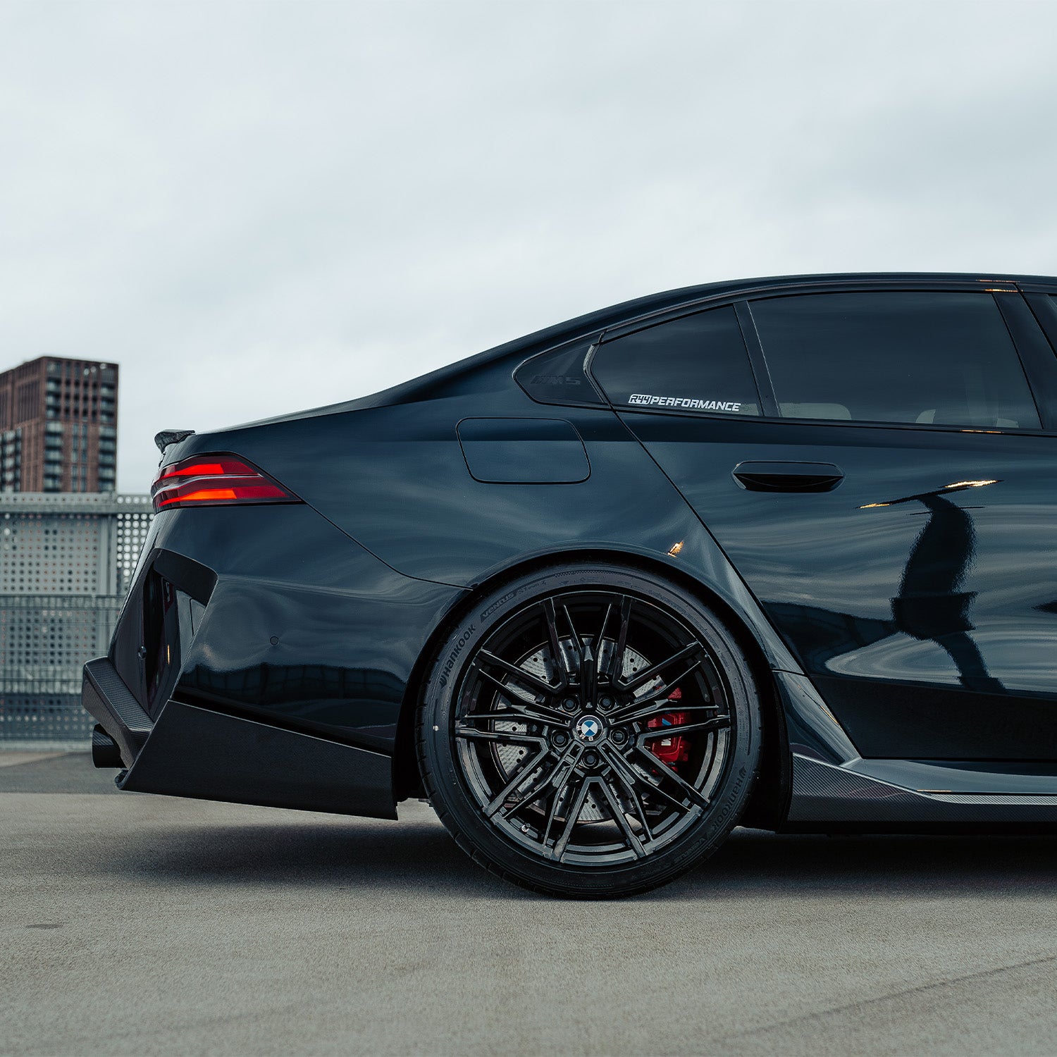 Transform the look of your BMW G90 M5 with the MHC+ Full Carbon Fibre Exterior Body Kit—a premium upgrade designed to enhance aerodynamics, performance, and styling. Crafted from high-quality prepreg carbon fibre, this complete package delivers an aggressive yet refined aesthetic while ensuring perfect fitment and durability. Complete Carbon Fibre Styling for Your BMW G90 M5 Designed specifically for the BMW G90 M5, this MHC+ exterior body kit includes six high-performance components: SP90 Carbon Fibre Front Splitter – Enhances downforce and front-end aerodynamics while adding a race-inspired look. Performance Style Carbon Fibre Side Skirts – Extends the vehicle’s profile for a lower, more aggressive stance. Performance Carbon Fibre Rear Spoiler – Improves high-speed stability and adds a sleek motorsport-inspired touch. Performance Style Carbon Fibre Rear Diffuser – Accentuates the M5’s muscular rear design. M Wing Mirror Covers in Carbon Fibre – Provides a stylish and sporty accent to the side profile. Carbon Fibre Shark Fin Antenna Cover – A subtle yet impactful upgrade for a fully cohesive carbon aesthetic. Carbon Kit Specifications 100% pure pre-preg carbon fibre construction OEM-style weave High gloss finish Fitment guarantee Supplied with pre-applied 3M adhesive double-sided tape Includes all necessary hardware 3 Year warranty Compatible Vehicles BMW G90 M5 Saloon (2024+)