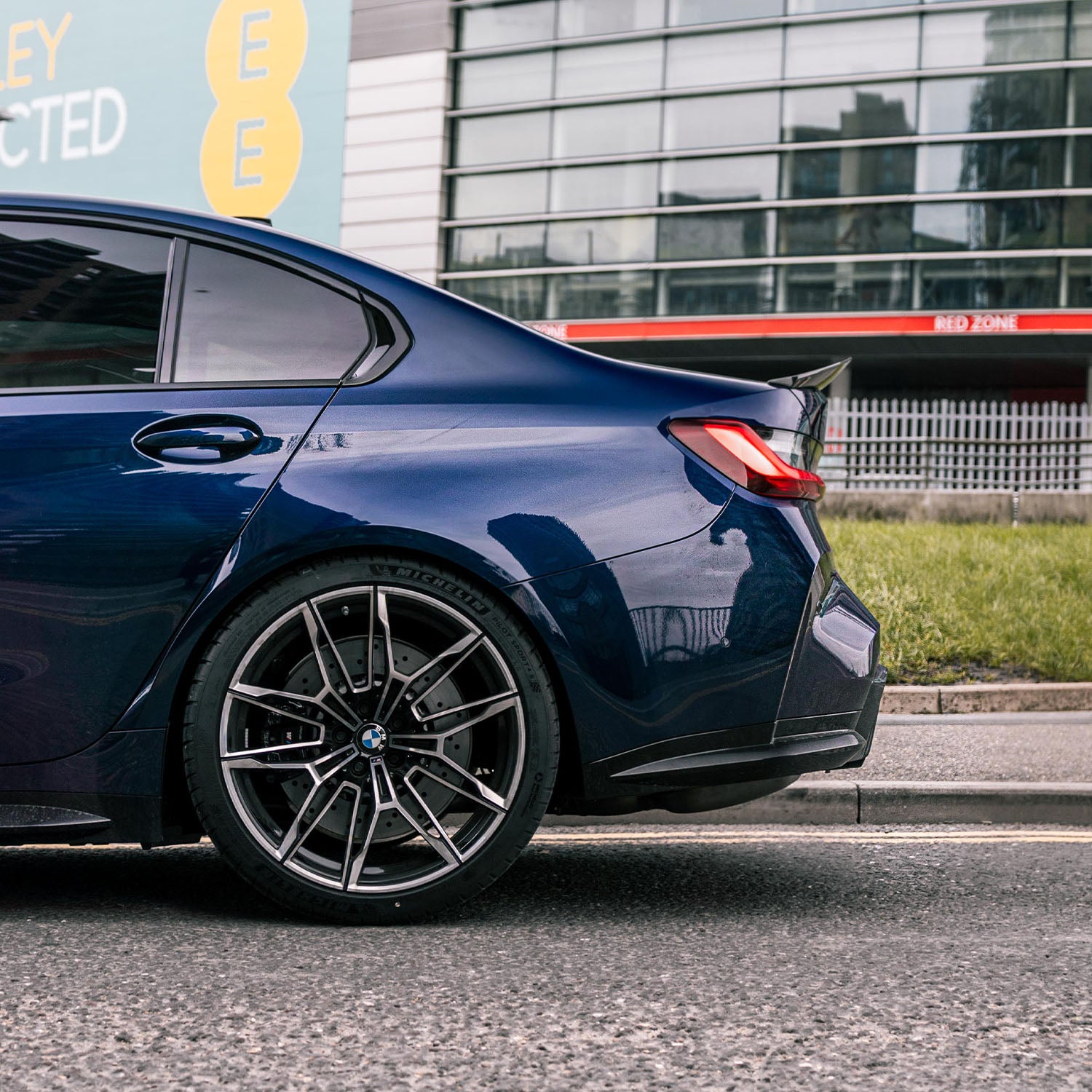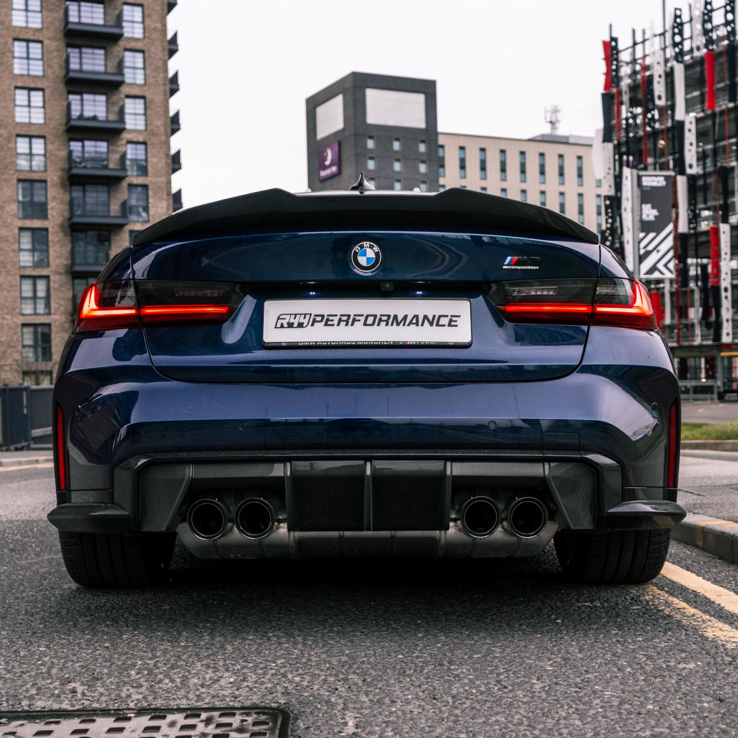MHC+ BMW G80 M3 Ducktail Style Rear Spoiler In Pre-Preg Carbon Fibre is a very aggressive rear spoiler design extending outwards the furthest out of all the MHC+ lip spoilers. The product features a central dip that accentuates two sharp fins for added aggression. Combine this spoiler with an MHC+ G80 rear diffuser to complete the look! Why choose pre-preg carbon fibre? Unlike normal carbon fibre, pre-preg carbon is reinforced for increased strength and durability. It can also be an astonishing 70% lighter than other carbon options, ideal for weight-saving. Quality-wise, pre-preg carbon is far more consistent meaning the chance of imperfections is dramatically reduced. The manufacturing process eliminates undesirable air bubbles and results in a perfect, sleek, smooth & high gloss finish, making the ultimate part to complement your vehicle. When you buy pre-preg, you are investing in a higher quality, longer-lasting part that will outlast other forms of carbon fibre and potentially save you money in the long term. Watch our full in-depth installation guide: Download the PDF version of the install guide here PRODUCT SPECIFICATION – 100% pure pre-preg carbon fibre construction- OEM-style weave- High gloss finish- Ducktail-style design- Fitment guarantee- Supplied with pre-applied 3M adhesive double-sided tape- 3 Year warranty COMPATIBILITY – BMW G80 M3 Saloon (2021+)- BMW G80 M3 Competition Saloon (2021+) Also fits BMW G20 3 Series Saloon WHAT’S IN THE BOX? – 1x MHC+ ducktail-style rear spoiler in pre-preg carbon fibre- Pre-applied 3M adhesive double-sided tape