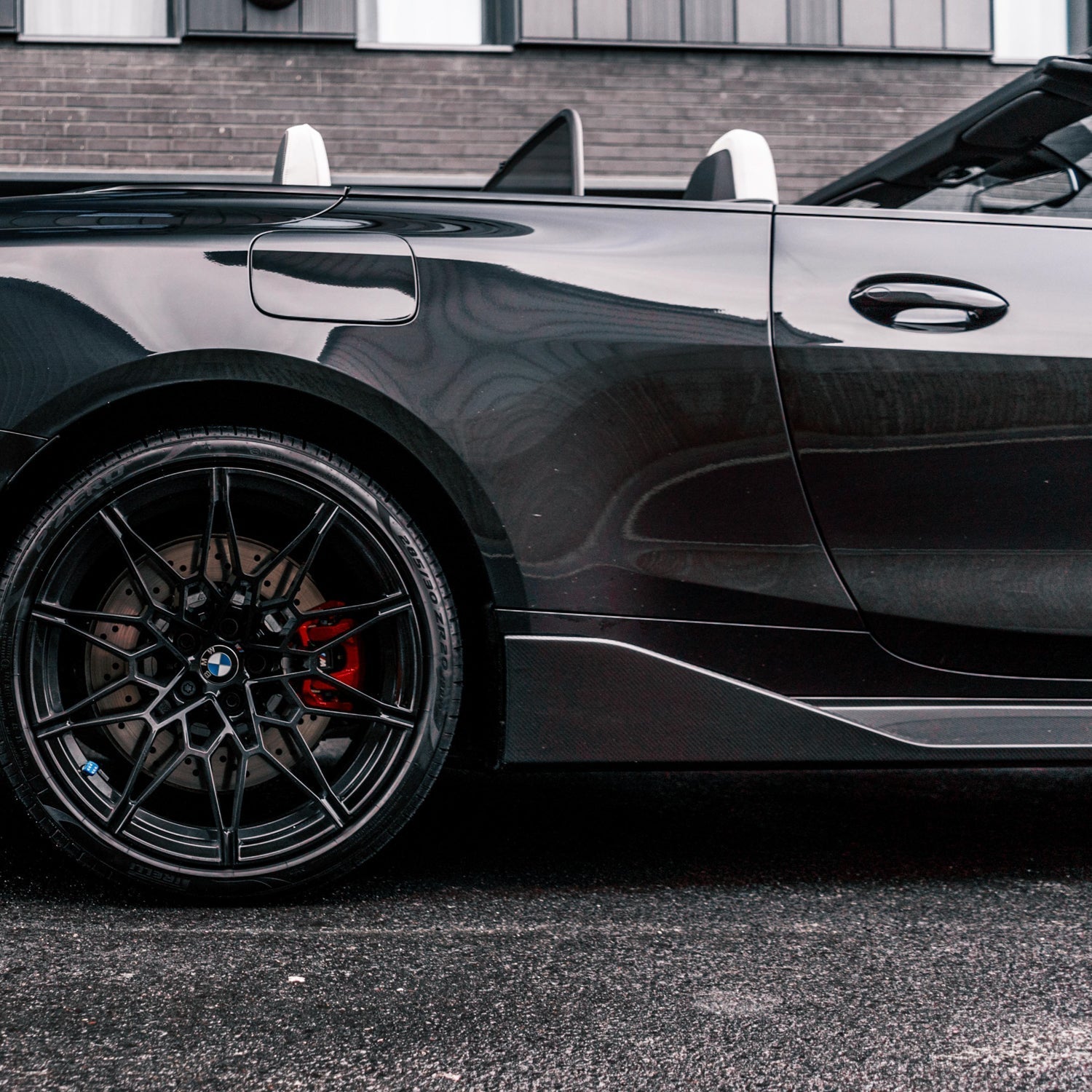 MHC+ BMW M4 Performance Style Side Skirts In Pre Preg Carbon Fibre are stunning OEM+ side skirts for the G82 & G83 BMW M4. With an aggressive fin design, these skirts give the illusion of the rear of the car being wider and lower – a huge benefit as the G82/G83 doesn’t have the extremely flared arches of the G80 M3. These MHC+ Performance Style Side Skirts are a direct replacement for the factory gloss black skirts, providing a much more aggressive and premium look. The MHC+ Performance Style Side Skirts feature the same built-in clips and hole positions of the original part. This will ensure ease and accuracy of fitting. All MHC+ Plus pre-preg carbon fibre parts are designed using 3D data from the vehicle and aluminium moulds to achieve the best possible quality. These skirts are a great addition with the Performance front splitter and rear bumper corners with the same style fin found on these skirts. Build your dream M4 today! Why choose pre-preg carbon fibre? Unlike normal carbon fibre, pre-preg carbon is reinforced for increased strength and durability. It can also be an astonishing 70% lighter than other carbon options, ideal for weight-saving. Quality-wise, pre-preg carbon is far more consistent meaning the chance of imperfections is dramatically reduced. The manufacturing process eliminates undesirable air bubbles and results in a perfect, sleek, smooth & high gloss finish, making the ultimate part to complement your vehicle. When you buy pre-preg, you are investing in a higher quality, longer-lasting part that will outlast other forms of carbon fibre and potentially save you money in the long term. PRODUCT SPECIFICATION – 100% pure pre-preg carbon fibre construction- OEM-style weave- High gloss finish- Performance-style design- Fitment guarantee- Supplied with pre-applied 3M adhesive double-sided tape- Includes all necessary hardware- 3 Year warranty COMPATIBILITY – BMW M4 (G82) (2021+) 4 Series – BMW M4 Cabriolet (G83) (2021+) 4 Series WHAT’S IN THE BOX? – Pair of MHC+ performance-style side skirts in gloss pre-preg carbon fibre- All necessary hardware for install