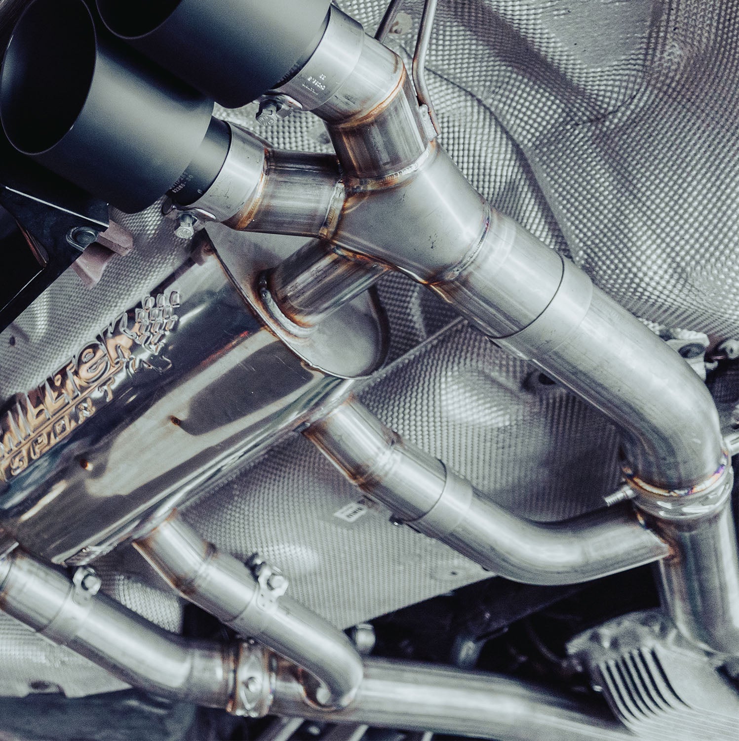 The High-performance BMW G87 M2 axle-back exhaust system from Milltek Sport allows you to unleash the true potential of the 2023+ BMW M2’s S58 engine. Not only does this G87 M2 exhaust upgrade sound amazing, it also improves performance by reducing the back pressure built up from exhaust gases. The axle-back configuration of this exhaust improves the overall character of the G87 M2 whilst keeping the engine tone refined for everyday driving. As you would expect with any Milltek Sport Exhaust, quality and durability are at the forefront. You can feel confident this stainless steel exhaust system will offer you immense driving pleasure for many miles to come! Designed and manufactured in the UK! G87 M2 EXHAUST SYSTEM COMPONENTS 2x Adapters to OE GPF/OPF – MSBM326LH Valved Outlet Pipe – MSBM422RH Valved Outlet Pipe – MSBM423Rear Silencer – MSBM357+ Your chosen exhaust tailpipes PRODUCT SPECIFICATION – High-quality type-304 aircraft-grade stainless steel- Precision, quality-controlled manufacture to ISO 9001 standards- Substantial weight saving over original equipment exhaust systems- Reduces back pressure with no loss of low-end or mid-range torque- Sharper throttle response- Designed & manufactured in the UK EXHAUST SYSTEM COMPATIBILITY This Milltek Sport exhaust system fits the following vehicles: – BMW G87 M2 Coupe (OPF/GPF equipped models only) INSTALLING THE G87 M2 MILLTEK EXHAUST