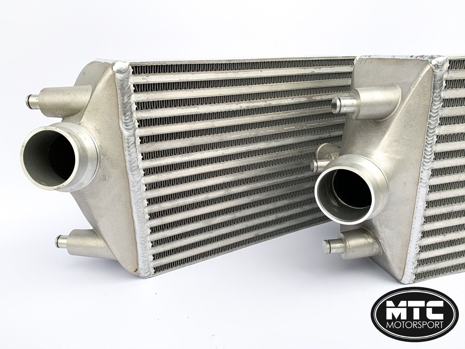 MTC Motorsport Porsche 911 991 Turbo S 991.1 and 991.2 Intercoolers These are the best quality, best fitting aftermarket intercoolers on the market for the 991 Turbo S. The intercoolers have been tried and tested and they are on a test vehicle of ours already with absolutely fantastic results. The temperatures compared to the standard intercooler are much lower especially with methanol used as well. The MTC intercooler features a massive core size of 315mm x 238mm x 115mm compared to the standard intercooler which only measures 80mm thick. The fin height externally is 8mm and internally it is staggered and 6.5mm height. The intercooler will give you 75% more surface area and 50% better flow. With CNC’d flowed cast end tanks and OEM mounting points retained with precise fitment there is no cutting or modifications required to fit. The intercoolers have been individually pressure tested to 5 bar without any issues. Our intercoolers are all inspected before they leave and packed in a moulded foam packing to prevent damage. This products comes with lifetime warranty.