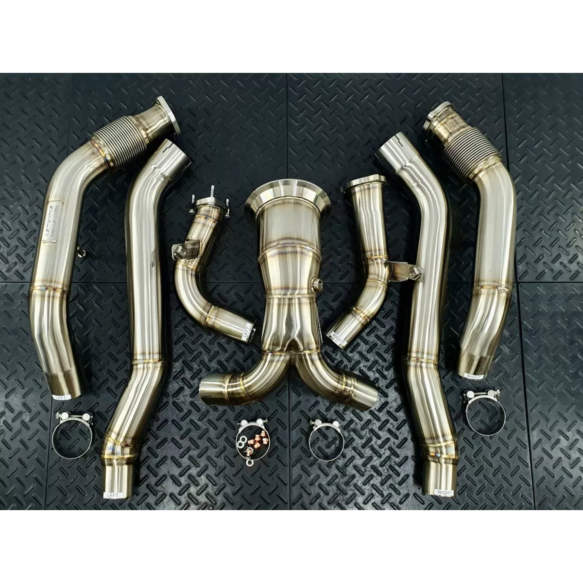 Compatible Vehicles: 2018+ Audi A7 Sportback Sedan C8 55Tsfi 3.0 Turbo 2019+ Audi A6 Sedan/Allroad C8 55Tsfi 3.0 Turbo *Available Options: GESI GEN2 400cpsi – catalytic converters rated for 1000hp. The new GEN2 series provides a significant improvement in exhaust flow over stock and offers the latest emissions technology. EPA Compliant catalytic converters have been third-party lab tested to meet or exceed local emissions standards in North America (excluding California). Ideal for forced induction and capable of withstanding up to 1,700F/ 925C core temp. At REDSTAR we rank them as the ones with the best performance/pollution reduction balance. >> Read more about G-Sport by GESI cats. OE-style Heat Shielding with ceramic inner liner – signature REDSTAR thermal management feature that reduces radiant heat from the exhaust pipes up to 70-80%. Being inspired by racecar engineers who uses it a lot, we moved heat shielding to the tuning industry and made it available as an option for any REDSTAR products. Usual thermal wraps or ceramic coatings are not even close in effectiveness and durability to our Heat Shielding. Please be aware of fake shielding when it is nothing but foil wrapped around the pipe. Without a sufficient ceramic wool layer inside and properly embossed foil it will not work as expected. Vband Downpipe to Res Delete Connection Straight Tunable 02 Spacers – Comes with 3 inserts to restrict flow to the 02 sensor and help set ready and prevent Engine Light conditions when using the Competition model without proper tuning. Main Features: Significant power gain Faster spool up and better throttle response Increasing the life of the turbos Reducing underhood temperature Adds a very nice tone to the exhaust 100% bolt-on installation 100% TIG welded and back purged Highest quality 2.0mm wall 304 stainless steel OEM-spec flanges All brackets and mounts as on OEM unit LHD/RHD Compliant Lifetime limited warranty Shipping: We offer WORLDWIDE shipping. Once you create your account your order will update with the appropriate shipping cost. Please, ask us for details and availability. Notes: OFF ROAD/MOTORSPORT USE ONLY! *This product is not designed to meet any emissions/noise standards and is not for street or highway use. This product is not certified and may not be legal for use on emissions controlled vehicles in any country/jurisdiction.