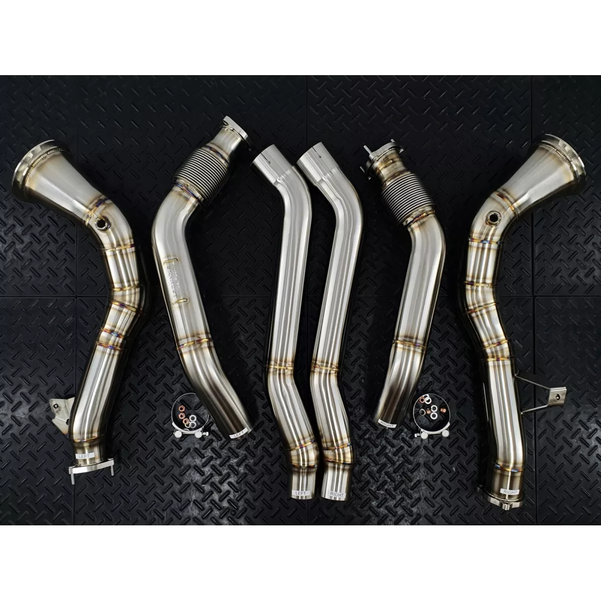 Compatible Vehicles: 2019+ Audi C8 S6 Sedan/Avant 2.9L Twin Turbo V6 2019+ Audi C8 S7 Sportback Sedan 2.9L Twin Turbo V6 Available Options: GESI GEN2 400cpsi- catalytic converters rated for 1000hp. The new GEN2 series provides a significant improvement in exhaust flow over stock and offers the latest emissions technology. EPA Compliant catalytic converters have been third-party lab tested to meet or exceed local emissions standards in North America (excluding California). Ideal for forced induction and capable of withstanding up to 1,700F/ 925C core temp. At REDSTAR we rank them as the ones with the best performance/pollution reduction balance.>> Read more about G-Sport by GESI cats. HJS HD 200cpsi- Ultra high-performance 200 cell made in Germany metal core catalytic converters. These extremely robust converters allow you to achieve flow numbers close to straight pipes while meeting strict Euro 6 emissions standards.>> Read more about HJS cats. OE-style Heat Shielding with ceramic inner liner – signature REDSTAR thermal management feature that reduces radiant heat from the exhaust pipes up to 70-80%. Being inspired by racecar engineers who uses it alot, we moved heat shielding to the tuning industry and made it available as an option for any REDSTAR products. Usual thermal wraps or ceramic coatings are not even close in effectiveness and durability to our Heat Shielding. Please be aware of fake shielding when it is nothing but foil wrapped around the pipe. Without a sufficient ceramic wool layer inside and properly embossed foil it will not work as expected. OPF – European Emission controlled cars only. Straight Tunable 02 Spacers – Comes with 3 inserts to restrict flow to the 02 sensor and help set ready and prevent Engine Light conditions when using the Competition model without proper tuning. Vband Downpipe to Res Delete Connection Main Features: Significant power gain Flow-optimized smooth transition design Faster spool up and better throttle response Increasing the life of the turbos Reducing under hood temperature Adds a very nice tone to the exhaust 100% bolt-on installation 100% TIG welded and back purged Highest quality 2.0mm wall 304L stainless steel OEM-spec V-band flanges All brackets and mounts as on OEM unit LHD/RHD Compliant Limited lifetime warranty Shipping: We offer WORLDWIDE shipping. Once you create your account your order will update with the appropriate shipping cost. Please, ask us for details and availability. Notes: OFF ROAD/MOTORSPORT USE ONLY! This product is not designed to meet any emissions standards and is not for street or highway use. This product is not certified and may not be legal for use on emissions controlled vehicles in any country/jurisdiction.