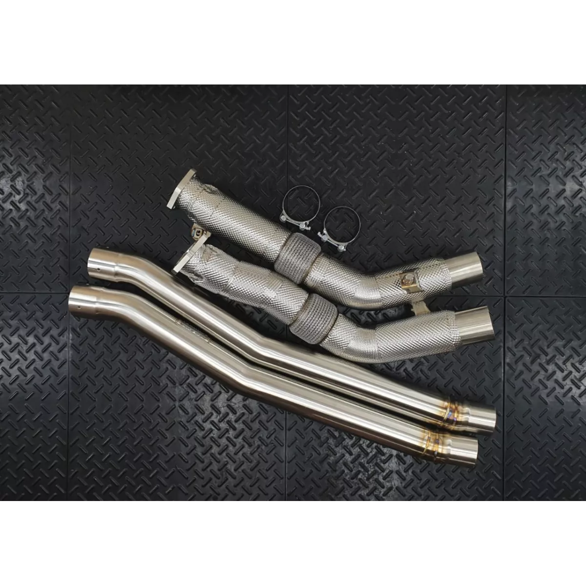 Compatible Vehicles: 2020+ Audi RSQ8 / RSQ8 Performance 4.0L twin-turbocharged V8 Available Options: Double-layer heatshielding on top portion is used to protect surrounding parts, wires, and hoses against radiant heat from the downpipes. Integrated thermal insulation reduces surface temperature up to 70%! What makes it an absolute winner, compared to usual thermal wrapping or ceramic coatings. It’s very important not just for safety reasons but also affects engine performance by reducing the underhood temperature. Main Features: Significant power gain Faster spool up and better throttle response Increasing the life of the turbos Adds a very nice tone to the exhaust 100% bolt-on installation 100% TIG welded and back purged Highest quality 2.0mm wall 304 stainless steel OEM-spec flanges All brackets and mounts as on OEM unit Limited lifetime warranty Shipping: We offer WORLDWIDE shipping. Once you create your account your order will update with the appropriate shipping cost. Please, ask us for details and availability. Notes: OFF ROAD/MOTORSPORT USE ONLY! *This product is not designed to meet any emissions/noise standards and is not for street or highway use. This product is not certified and may not be legal for use on emissions controlled vehicles.