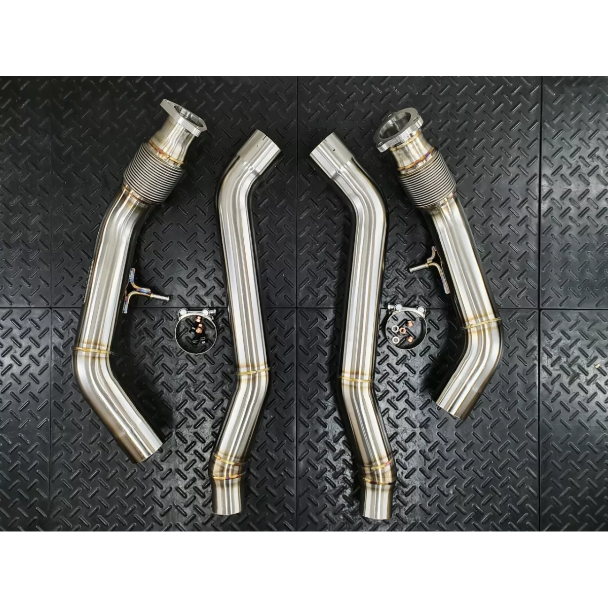 Compatible Vehicles: 2018+ Audi A7 Sportback Sedan C8 55Tsfi 3.0 Turbo 2019+ Audi A6 Sedan/Allroad C8 55Tsfi 3.0 Turbo Available Options: OEM-style Heat Shielding with ceramic inner liner – the best way to reduce radiant heat up to 70%. Usual thermal wraps or coats not even close in effectiveness and durability to the Heat Shields. Must have option for the modern temp sensitive turbo engines. Main Features: Adds a very nice tone to the exhaust 100% bolt-on installation 100% TIG welded and back purged Highest quality 2.0mm wall 304 stainless steel All brackets and mounts as on OEM unit Limited lifetime warranty Shipping: We offer WORLDWIDE shipping. Once you create your account your order will update with the appropriate shipping cost. Please, ask us for details and availability. Notes: OFF ROAD/MOTORSPORT USE ONLY! This product is not designed to meet any emissions standards and is not for street or highway use. This product is not certified and may not be legal for use on emissions controlled vehicles in any country/jurisdiction.