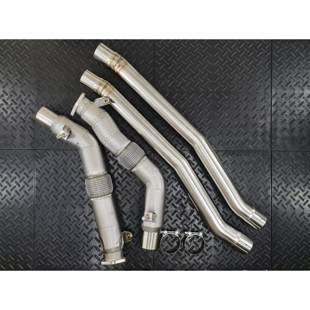 Compatible Vehicles: 2020+ Audi SQ7 4.0L twin-turbocharged V8 2020+ Audi SQ8 4.0L twin-turbocharged V8 Available Options: Double-layer heatshielding on top portion is used to protect surrounding parts, wires, and hoses against radiant heat from the downpipes. Integrated thermal insulation reduces surface temperature up to 70%! What makes it an absolute winner, compared to usual thermal wrapping or ceramic coatings. It’s very important not just for safety reasons but also affects engine performance by reducing the underhood temperature. Main Features: Significant power gain Faster spool up and better throttle response Increasing the life of the turbos Adds a very nice tone to the exhaust 100% bolt-on installation 100% TIG welded and back purged Highest quality 2.0mm wall 304 stainless steel OEM-spec flanges All brackets and mounts as on OEM unit Limited lifetime warranty Shipping: We offer WORLDWIDE shipping. Once you create your account your order will update with the appropriate shipping cost. Please, ask us for details and availability. Notes: Read our Frequently Asked Questions. OFF ROAD/MOTORSPORT USE ONLY! *This product is not designed to meet any emissions/noise standards and is not for street or highway use. This product is not certified and may not be legal for use on emissions controlled vehicles.