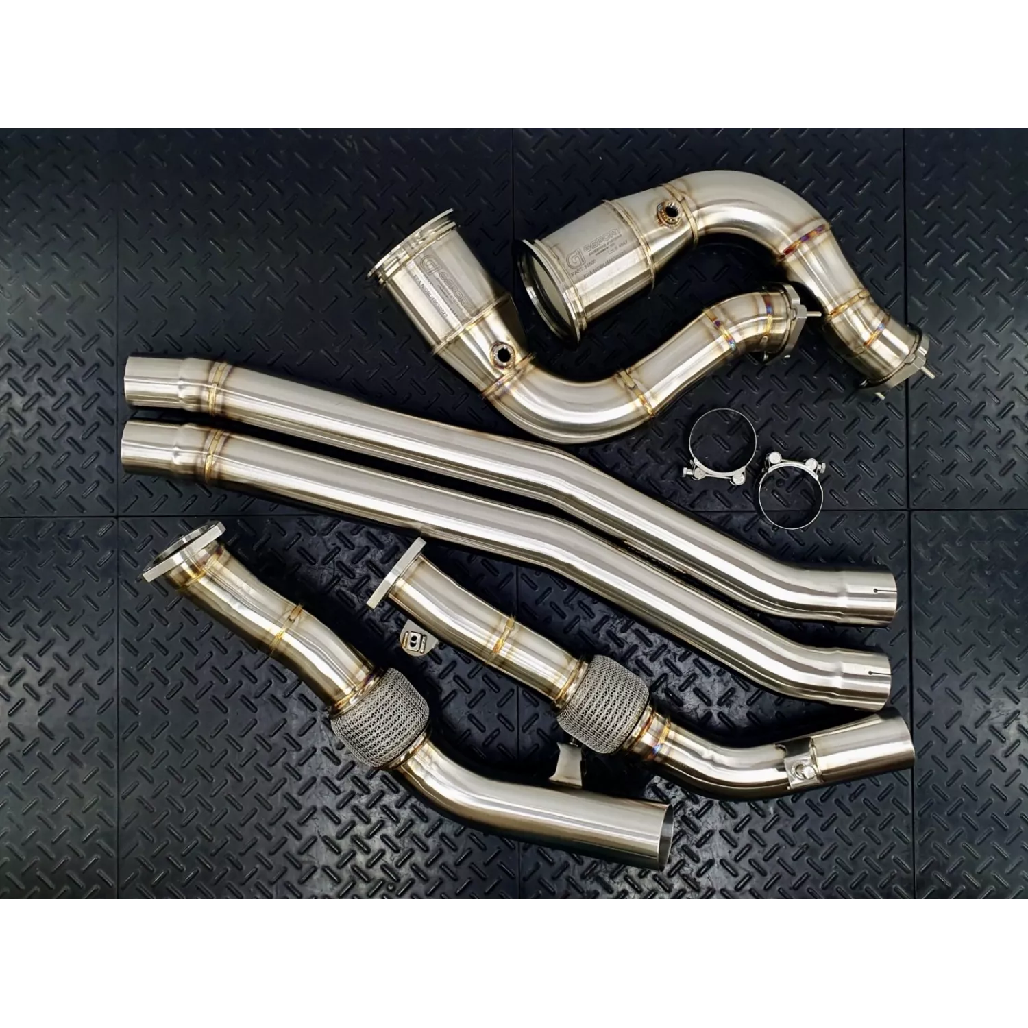 Introducing the enhanced Cayenne S experience. By replacing the OEM catalytic converters with REDSTAR EXHAUST downpipes and a resonator delete, we unlock the complete potential of the biturbo engine. When combined with an ECU tune, our downpipes seamlessly handle amplified power levels, even when incorporating a substantial big-turbo upgrade. Description Compatible Vehicles: 2024+ Cayenne S 4.0 *Available Options: HJS HD 200cpsi- Ultra High-Performance 1000+hp rated catalytic converters. Made in Germany most reputed converters for their outstanding characteristics, quality and durability. >> Read more about HJS cats. GESI GEN2 400cpsi – catalytic converters rated for 1000hp. The new GEN2 series provides a significant improvement in exhaust flow over stock and offers the latest emissions technology. EPA Compliant catalytic converters have been third-party lab tested to meet or exceed local emissions standards in North America (excluding California)>> Read more about G-Sport by GESI cats. OE-style Heat Shielding with ceramic inner liner – signature REDSTAR thermal management feature that reduces radiant heat from the exhaust pipes up to 70-80%. Being inspired by racecar engineers who uses it alot, we moved heat shielding to the tuning industry and made it available as an option for any REDSTAR products. Usual thermal wraps or ceramic coatings are not even close in effectiveness and durability to our Heat Shielding. Please be aware of fake shielding when it is nothing but foil wrapped around the pipe. Without a sufficient ceramic wool layer inside and properly embossed foil it will not work as expected. Vband Downpipe to Res Delete Connection Main Features: Significant power gain Faster spool up and better throttle response Increasing the life of the turbos Reducing underhood temperature Adds a very nice tone to the exhaust 100% bolt-on installation 100% TIG welded and back purged Highest quality 2.0mm wall 304 stainless steel OEM-spec flanges All brackets and mounts as on OEM unit Limited lifetime warranty Shipping: We offer WORLDWIDE shipping. Once you create your account your order will update with the appropriate shipping cost. Please, ask us for details and availability. Notes: For more info contact – info@bafmotorsport.co.uk OFF ROAD/MOTORSPORT USE ONLY! *This product is not designed to meet any emissions/noise standards and is not for street or highway use. This product is not certified and may not be legal for use on emissions controlled vehicles in any country/jurisdiction.