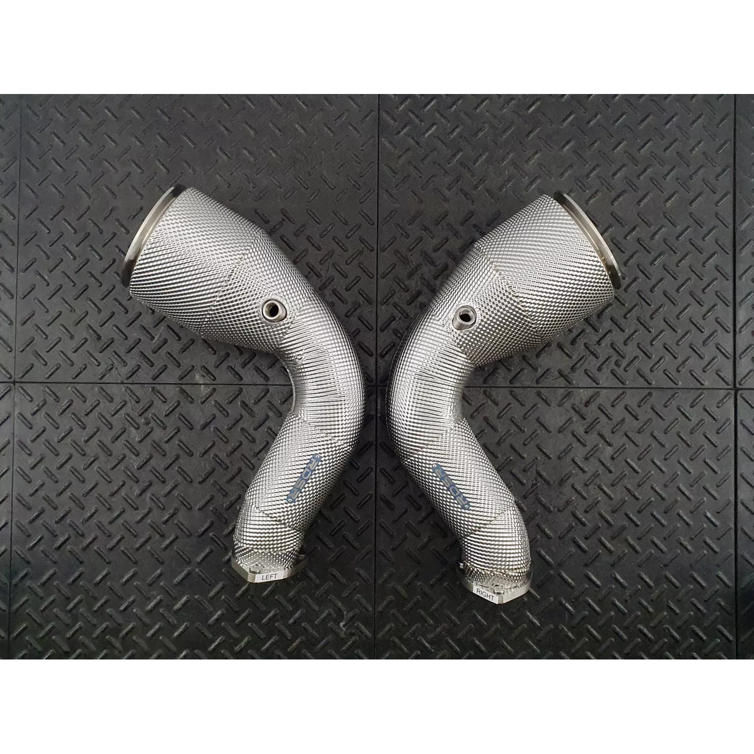 Not much can be improved upon in modern supercars like the Urus. But they’re incredibly responsive to exhaust modifications. Our Urus downpipes offer a significant improvement in both sound and performance. Urus Stage 2 Catless Heat Shielded Downpipes Video Urus Downpipes Video Description Compatible Vehicles: 2018+ Lamborghini Urus 2022-2025 Lamborghini Urus Performante 2023-2025 Lamborghini Urus S 2025+ Lamborghini Urus SE Available Options: HJS HD 200cpsi- Ultra High-Performance 1000+hp rated catalytic converters. Made in Germany most reputed converters for their outstanding characteristics, quality and durability. These extremely robust converters allow you to achieve flow numbers close to straight pipes while meeting strict Euro 6 emissions standards.>> Read more about HJS cats. GESI GEN2 400cpsi- catalytic converters rated for 1200hp. The new GEN2 series provides a significant improvement in exhaust flow over stock and offers the latest emissions technology. EPA Compliant catalytic converters have been third-party lab tested to meet or exceed local emissions standards in North America (excluding California). Ideal for forced induction and capable of withstanding up to 1,700F/ 925C core temp. At REDSTAR we rank them as the ones with the best performance/pollution reduction balance. >> Read more about G-Sport by GESI cats. OE-style Heat Shielding with ceramic inner liner – signature REDSTAR thermal management feature that reduces radiant heat from the exhaust pipes up to 70-80%. Being inspired by racecar engineers who uses it alot, we moved heat shielding to the tuning industry and made it available as an option for any REDSTAR products. Usual thermal wraps or ceramic coatings are not even close in effectiveness and durability to our Heat Shielding. Please be aware of fake shielding when it is nothing but foil wrapped around the pipe. Without a sufficient ceramic wool layer inside and properly embossed foil it will not work as expected. OPF Tubes – European emissions cars only. Straight Tunable 02 Spacers – Comes with 3 inserts to restrict flow to the 02 sensor and help set ready and prevent Engine Light conditions when using the Competition model without proper tuning. Main Features: Significant power gain flow-optimized smooth transition design Faster spool up and better throttle response Increasing the life of the turbos Reducing under hood temperature Adds a very nice tone to the exhaust 100% bolt-on installation 100% TIG welded and back purged Highest quality 2.0mm wall 304 stainless steel OEM-spec V-band flanges All brackets and mounts as on OEM unit Limited lifetime warranty Shipping: We offer WORLDWIDE shipping. Once you create your account your order will update with the appropriate shipping cost. Please, ask us for details and availability. Notes: For more info contact – info@bafmotorsport.co.uk Read our Frequently Asked Questions. Read our CEL Free Guide. OFF ROAD/MOTORSPORT USE ONLY! This product is not designed to meet any emissions standards and is not for street or highway use. This product is not certified and may not be legal for use on emissions controlled vehicles in any country/jurisdiction.