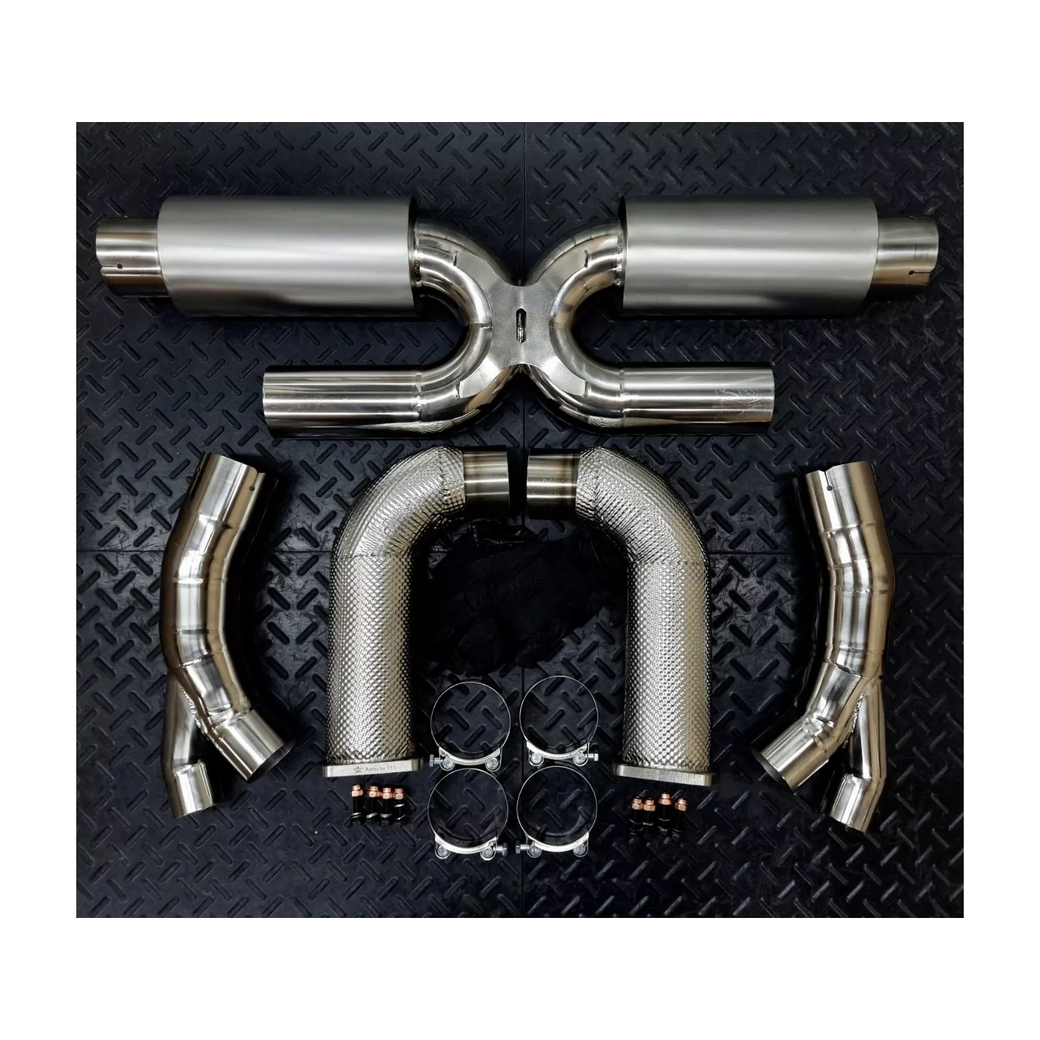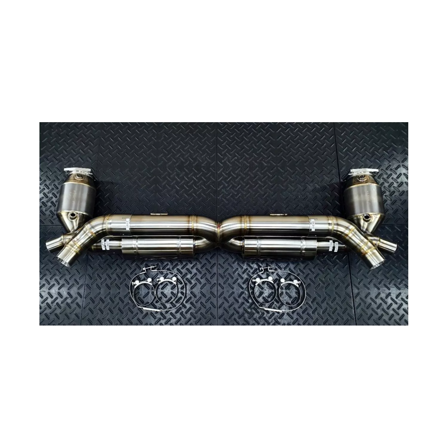 An ultimate combination of sound-balanced Race-X muffler-replacement exhaust, and perfectly designed catted section. 991 911 Turbo S HJS Catted Full Exhaust System 991 911 Turbo S Stainless Full Exhaust Dyno Video Exhaust section without cat bypass can be purchased on request, Please provide VIN when ordering. Description Compatible Vehicles: 2014-2017 Porsche 991 Turbo / Turbo S 2017-2019 Porsche 991.2 Turbo / Turbo S Available Options: OEM-style Heat Shielding- on catted section with ceramic inner liner the best way to reduce radiant heat up to 70%. Usual thermal wraps or coats not even close in effectiveness and durability to the Heat Shields. Must have option for the modern temp sensitive turbo engines. Titanium- Titanium, the epitome of lightweight materials, infuses an exotic symphony into your exhaust note while shedding weight. Its inherent nature resists heat shielding, ensuring an authentic and captivating auditory experience that resonates with the true essence of high-performance driving. HJS HD 200cpsi- Ultra High-Performance catalytic converters. Made in Germany. The most reputed converters for their outstanding characteristics, quality and durability. >> Read more about HJS cats. GESI GEN2 400cpsi- catalytic converters rated for 1000hp. The new GEN2 series provides a significant improvement in exhaust flow over stock and offers the latest emissions technology. EPA Compliant catalytic converters have been third-party lab tested to meet or exceed local emissions standards in North America (excluding California) >> Read more about G-Sport by GESI cats. Main Features: Significant power gain Faster spool up and better throttle response Increasing the life of the turbos Reducing under hood temperature Adds a very nice tone to the exhaust 100% bolt-on installation 100% TIG welded and back purged Highest quality 2.0mm wall 304 stainless steel OEM-spec V-band flanges All brackets and mounts as on OEM unit Limited lifetime warranty Shipping: We offer WORLDWIDE shipping. Once you create your account your order will update with the appropriate shipping cost. Please, ask us for details and availability. Notes: For more info contact – info@bafmotorsport.co.uk OFF ROAD/MOTORSPORT USE ONLY! This product is not designed to meet any emissions standards and is not for street or highway use. This product is not certified and may not be legal for use on emissions controlled vehicles in any country/jurisdiction *Special order product