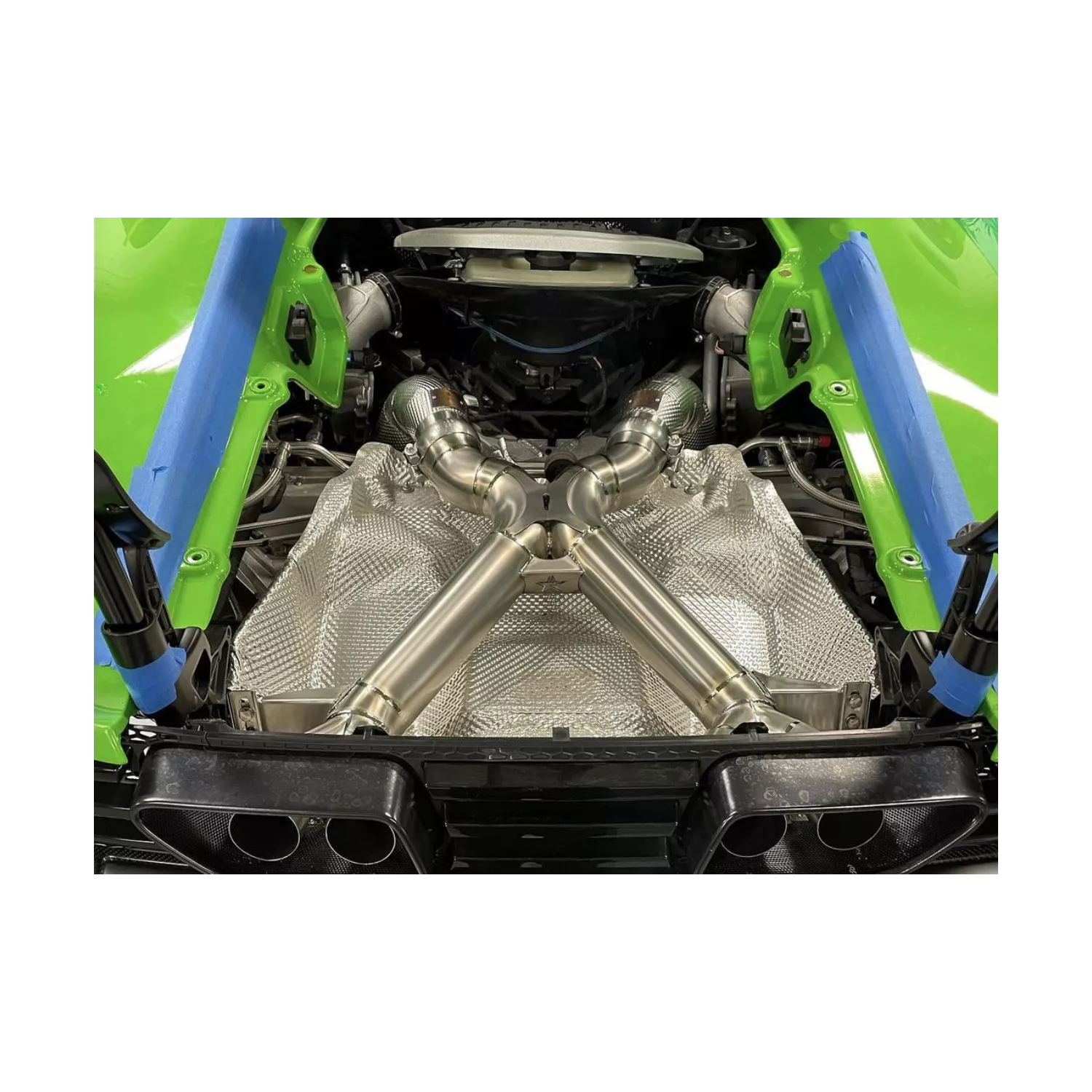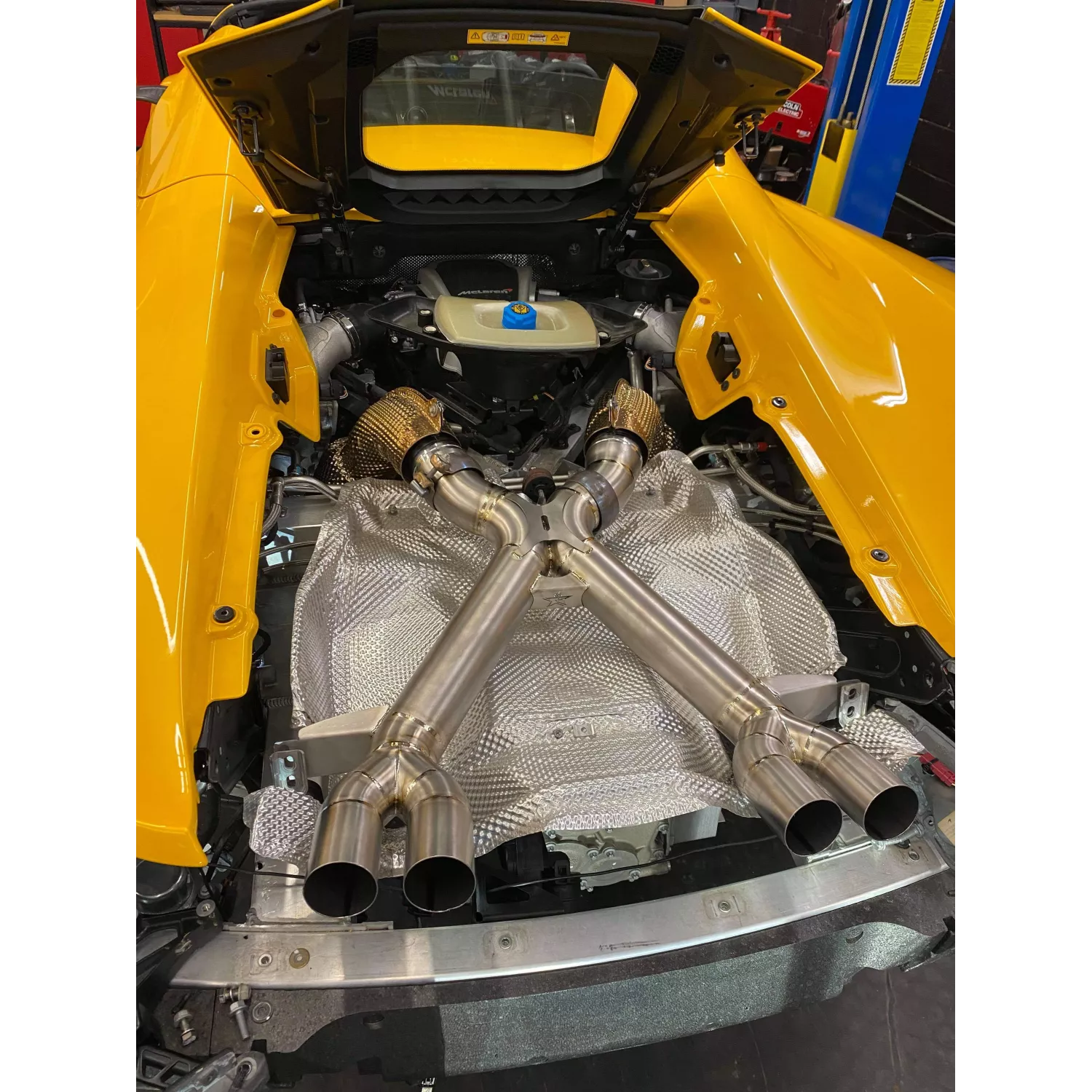 Experience the perfect harmony of our McLaren 650S sound-balanced Race-X muffler-replacement exhaust—a pinnacle in exhaust engineering. Designed for seamless integration, it pairs flawlessly with all factory components. Easily bolt the muffler section to the OEM catalytic converters for a simplified yet high-performance enhancement. 650S Heat Shielded Downpipes and Titanium Exhaust video Description Compatible Vehicles: McLaren 650S twin-turbocharged V8 M838T *Available Options: Titanium- Titanium, the epitome of lightweight materials, infuses an exotic symphony into your exhaust note while shedding weight. Its inherent nature ensures an authentic and captivating auditory experience that resonates with the true essence of high-performance driving. Inconel 625- Crafting a high-pitched, ripping exotic sports car sound, our exhaust made from Inconel surpasses stainless steel in both weight reduction and sound quality. Impressively, it’s a staggering 100 times more durable than titanium, showcasing the pinnacle of performance and longevity. Heat Shield – Ceramic wool lined A231SS Heat Shielding Main Features: Significant power gain OEM like Ceramic wool heat shielding Faster spool up and better throttle response Increasing the life of the turbos Reducing under hood temperature Adds a very nice tone to the exhaust 100% bolt-on installation 100% TIG welded and back purged Highest quality 2.0mm wall 304 stainless steel OEM-spec flanges All brackets and mounts as on OEM unit Limited lifetime warranty Shipping: We offer WORLDWIDE shipping. Once you create your account your order will update with the appropriate shipping cost. Please, ask us for details and availability. Notes: For more info please contact – info@bafmotorsport.co.uk OFF ROAD/MOTORSPORT USE ONLY! This product is not designed to meet any emissions/noise standards and is not for street or highway use. This product is not certified and may not be legal for use on emissions controlled vehicles in any country/jurisdiction. *Special order product