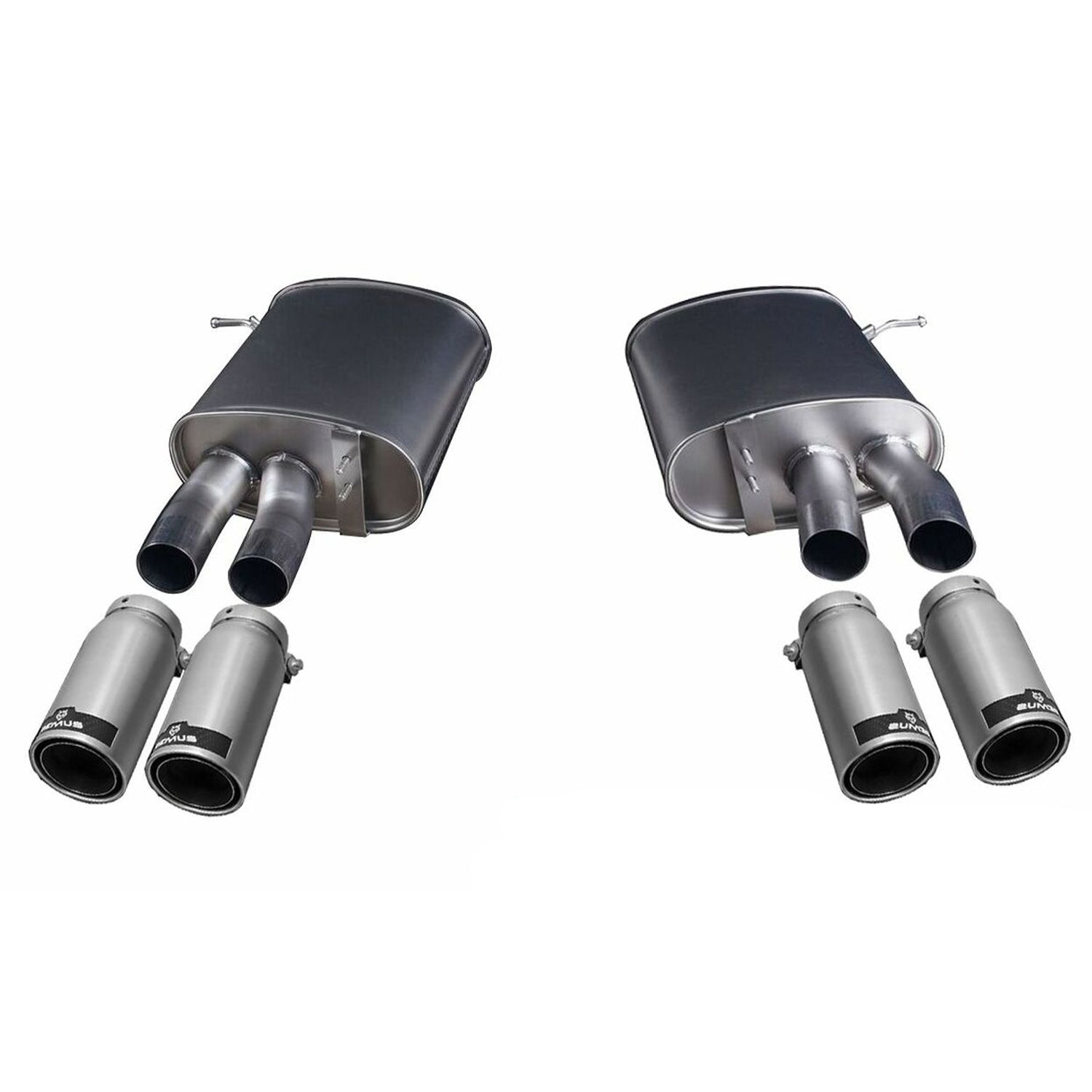Remus BMW 335i Rear Silencer is a fully stainless steel exhaust upgrade to enhance both the performance and sound of your BMW. With a noticeable difference over the standard, this is the perfect exhaust modification for both individuals who are looking to tune their 335i, or simply just want to hear their straight-six sing! Remus have been manufacturing high-quality exhaust systems for over two decades, even producing OE components and systems for well-known vehicle manufacturers. When you purchase Remus products, you can have full confidence you are getting outstanding quality, fitment & durability. Please note: This system will require you to cut your vehicle’s rear skirt or purchase an aftermarket diffuser to accommodate. Template for cutting is provided. NOT SUITABLE for M-Sport cars. PRODUCT SPECIFICATION – Aggressive racing sound- Shot blasted surface – 100% stainless steel- Performance increase – Reduced back pressure- Lightweight construction- Perfect shape and fitment- Handmade in Austria COMPATIBILITY – BMW E90 335i Saloon (2006-2009)- BMW E92 335i Coupe (2006-2009)- BMW E93 335i Convertible (2006-2009)- NOT SUITABLE for M Sport vehicles! WHAT’S IN THE BOX? – Remus BMW 335i Rear Silencer- Cutting template for rear bumper