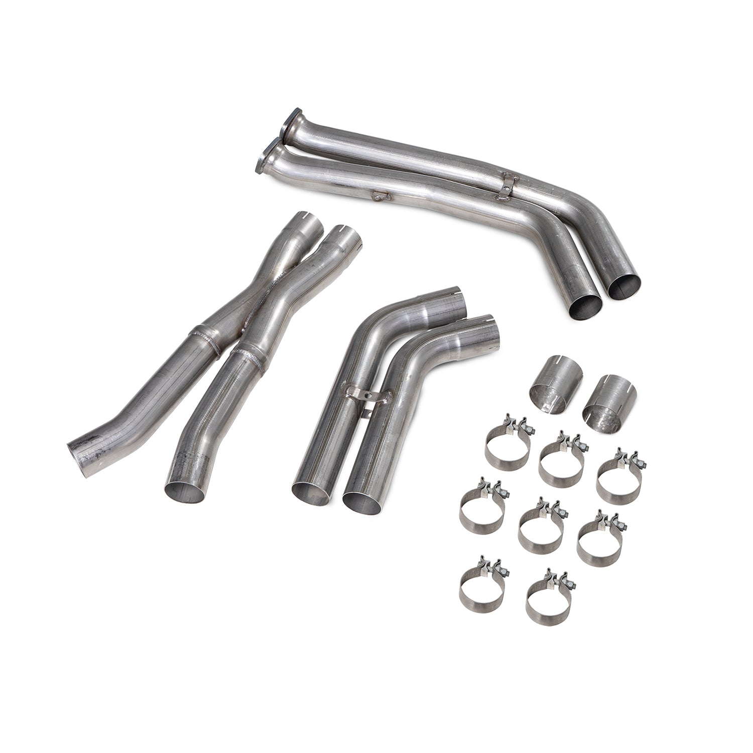Scorpion Exhausts OPF Delete Package for the BMW X3M F97 is a great value exhaust upgrade – as a stand-alone or when combined with the Scorpion BMW X3M OPF-Back System. Available in a non-resonated (louder) configuration. By removing the factory OPFs, your exhaust system will be far less restrictive. More free-flowing exhaust gases means more power, better sound and increased tuning potential. If you’re looking for more, this mid-section can be paired with Scorpion’s OPF-back, making this system a full X3M Cat Back! As for installation, we offer professional fitting at our London workshop. Get in touch to arrange an appointment. Alternatively, Scorpion provides a comprehensive fitting guide. Click here to download. PRODUCT SPECIFICATION – Stainless steel construction- 70mm diameter- NON-RESONATED: 10.9kg weight (5.9kg lighter than factory)- Bypasses factory OPF- Requires OPF-delete cables or stage 2 engine software COMPATIBILITY – BMW F97 X3M Pre-LCI (2019-2022)- BMW F97 X3M Competition Pre-LCI (2019–2022) WHAT’S IN THE BOX? 851BM – Front Pipes853BM – Non Resonated GPF Delete Pipes400FK – Fitting Kit *DISCLAIMER: Scorpion Exhausts are generally designed for UK/EU-spec vehicles and aren’t guaranteed to fit vehicles in the US & global markets*