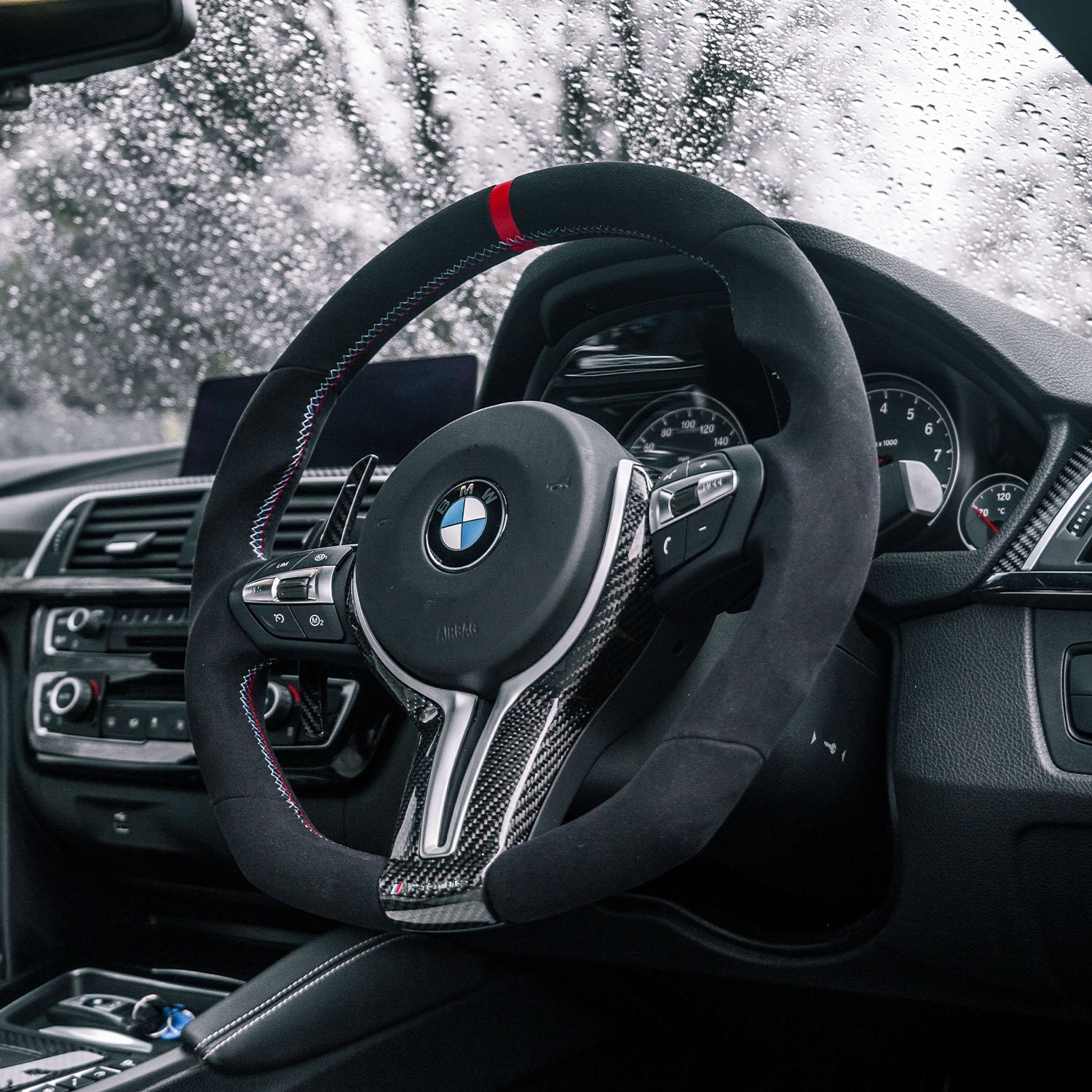 SHFT BMW F Series Flat Bottom Steering Wheel In Alcantara With Red Stripe is the ultimate performance steering wheel for your F Series BMW. Being fully wrapped in Alcantara with a moulded grip, this wheel offers superb grip and ergonomics – perfect for spirited driving. PRODUCT SPECIFICATION – Finished in durable Alcantara – Flat bottom design- Moulded grips – Red 12 o’clock centre stripe at the top of the wheel – BMW tri-colour stitching You will need to fit all parts including the airbag, and steering wheel controls and insert off your OEM wheel. Alternatively, get in touch for professional fitment. – All parts off of the OEM wheel fit onto this custom wheel *DISCLAIMER* NOT ALL FUNCTIONS ARE TRANSFERABLE (HEATED FUNCTION, LANE ASSIST etc.) COMPATIBILITY BMW 1 SERIES F20 & F21 (2015-2019) BMW 2 SERIES F22, F23 & F87 (2015-2019) BMW 3 SERIES F30, F31, F34 & F80 (2015-2019) BMW 4 SERIES F32, F33, F36, F82 & F83 (2015-2019) BMW X5 F85 BMW X6 F86 *All SHFT wheels come with a 2-year warranty. This does not cover general wear & tear.