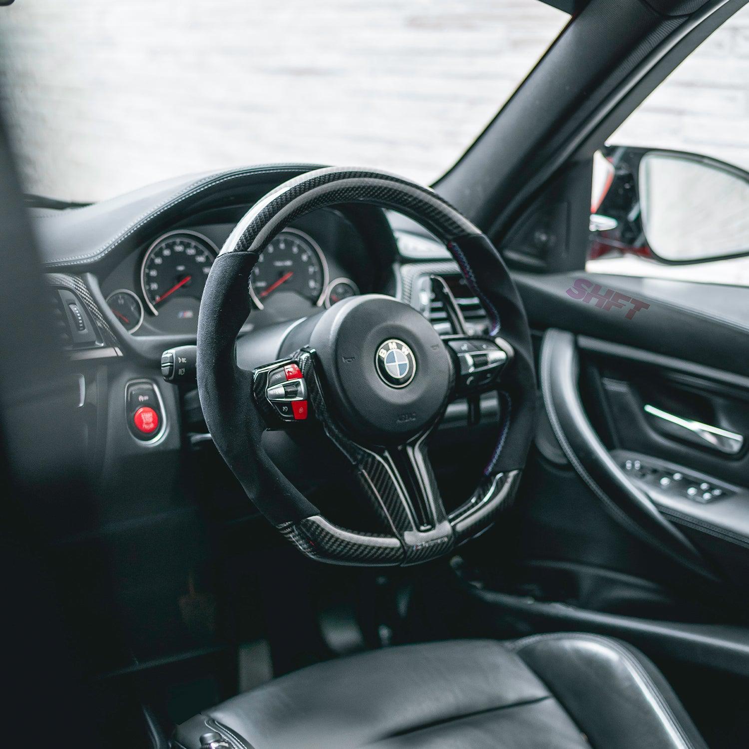 SHFT BMW F Series Flat Bottom Steering Wheel In Gloss Carbon Fibre & Alcantara