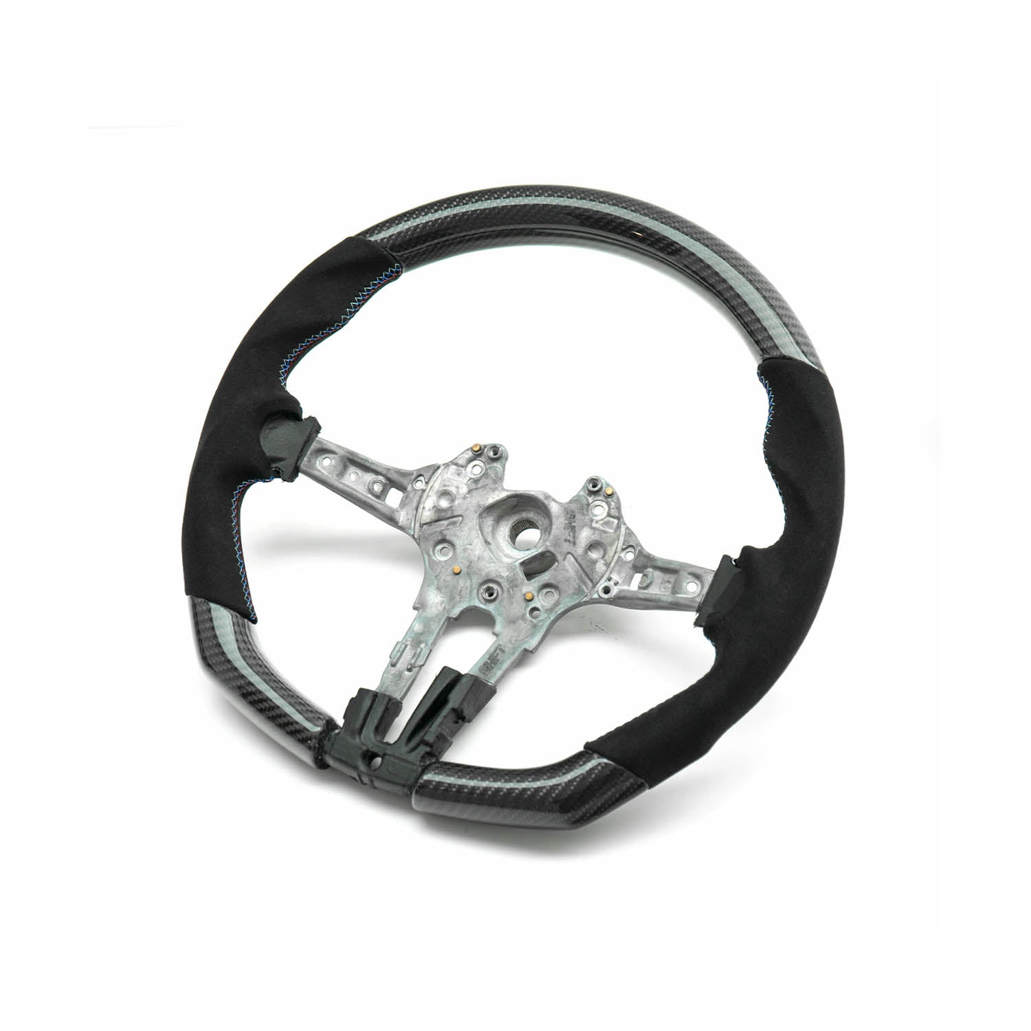 SHFT BMW F Series Flat Bottom Steering Wheel In Gloss Carbon Fibre & Alcantara is a stunning up-market interior upgrade for your F Series BMW. Featuring a gloss carbon fibre top & bottom, the wheel looks incredibly premium in comparison to the standard F Series steering wheels. The long-lasting Alcantara grips offer improved ergonomics for an enhanced driving experience. Feel free to add an optional centre marker – we have this available in red or a custom colour of your choice. PRODUCT SPECIFICATION Alcantara grips for a better driving experience Genuine Gloss Carbon Fibre top and bottom Flat bottom design Hand-stitched in BMW Tri-colour stitching You will need to fit all parts including the airbag, and steering wheel controls and insert off your OEM wheel. All parts off of the OEM wheel fit onto this custom wheel *DISCLAIMER* NOT ALL FUNCTIONS ARE TRANSFERABLE (HEATED FUNCTION, LANE ASSIST etc.) COMPATIBILITY BMW 1 SERIES F20 & F21 (2015-2019) BMW 2 SERIES F22, F23 & F87 (2015-2019) BMW 3 SERIES F30, F31, F34 & F80 (2015-2019) BMW 4 SERIES F32, F33, F36, F82 & F83 (2015-2019) BMW X5 F85 BMW X6 F86 *All SHFT steering wheels come with a 2-year warranty for your peace of mind.
