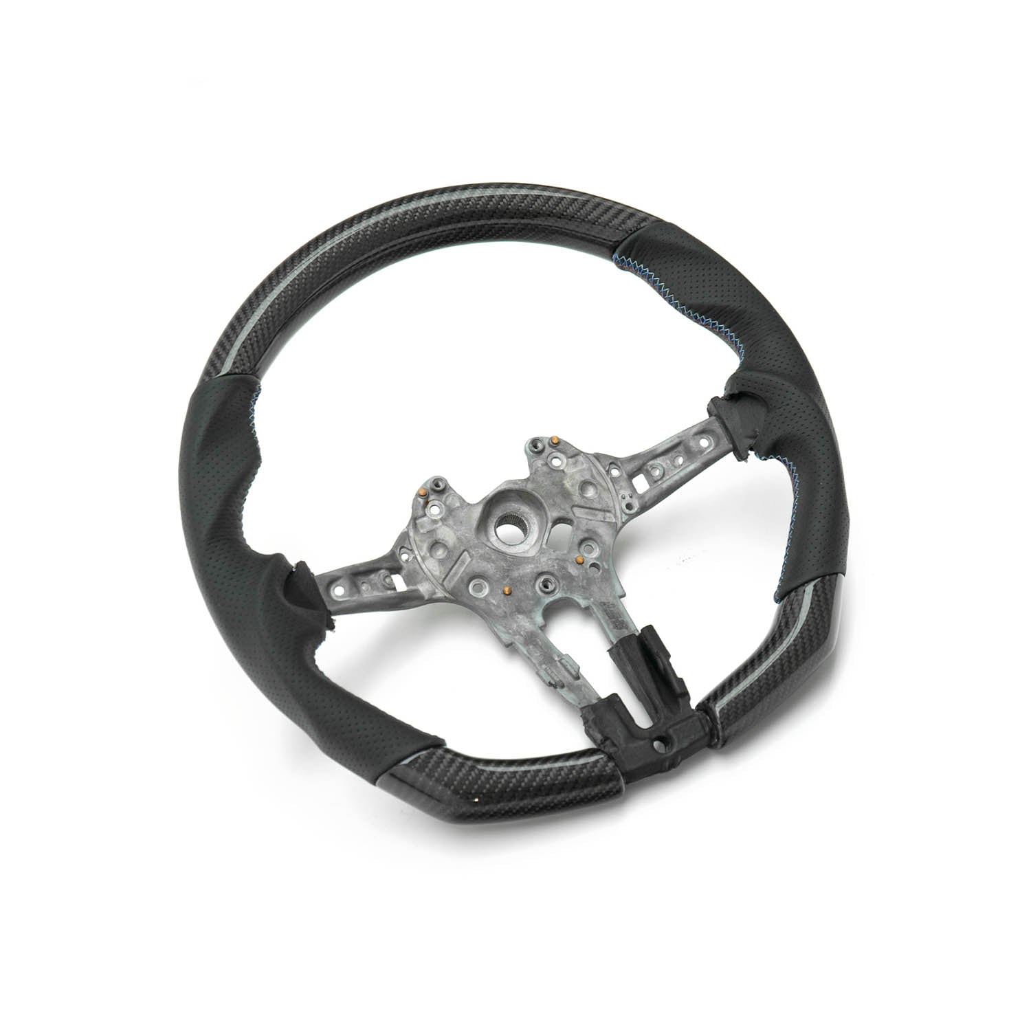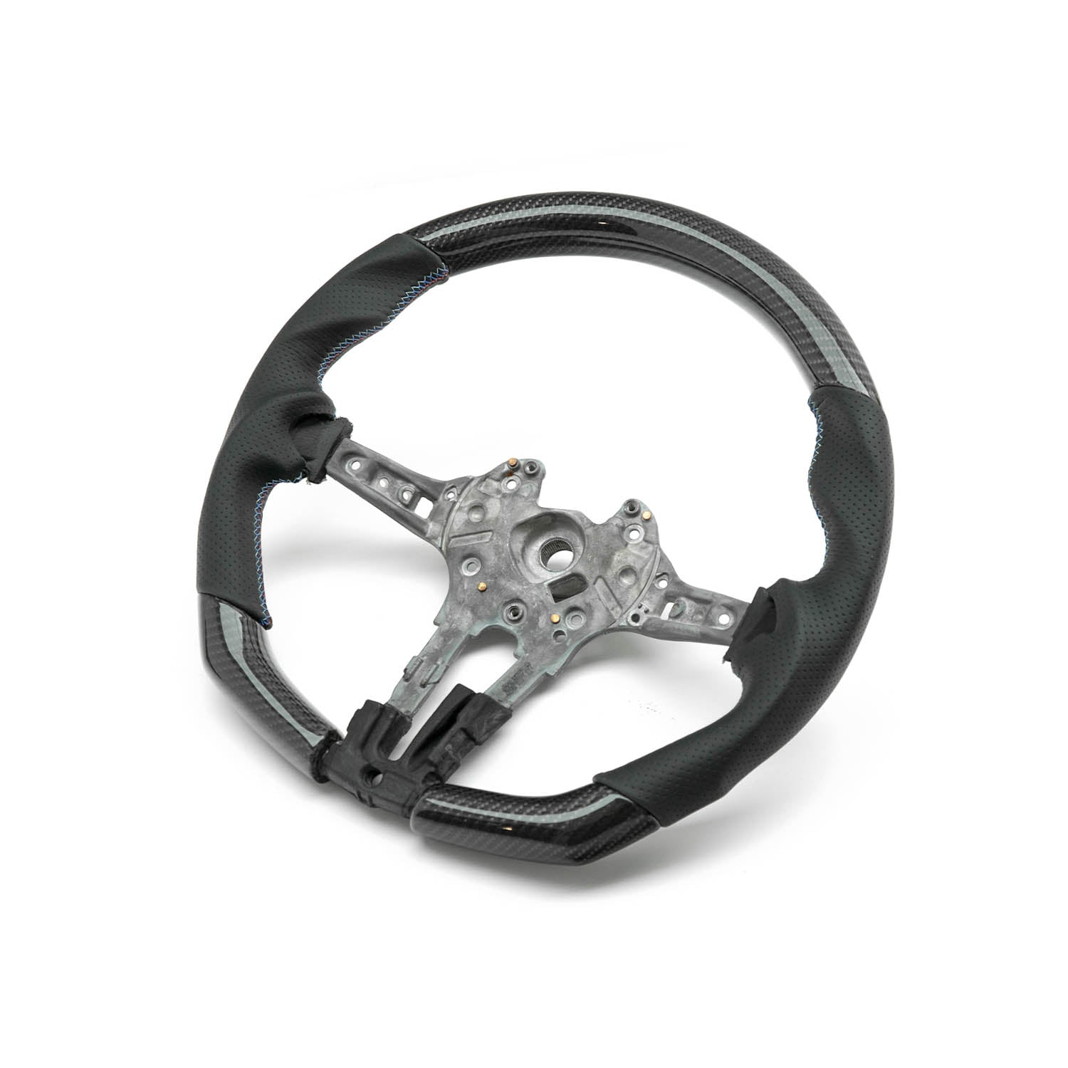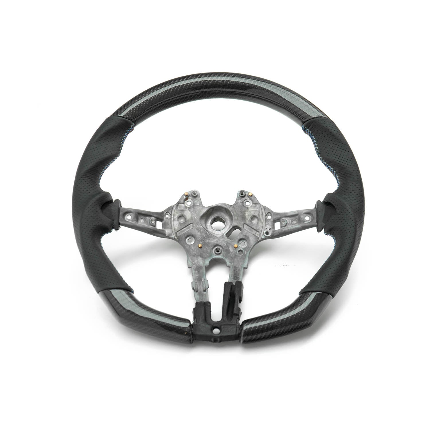 SHFT BMW F Series Flat Bottom Steering Wheel In Gloss Carbon & Perforated Leather is the ultimate premium steering wheel upgrade for your F Series BMW. The combination of high gloss carbon fibre and perforated leather adds both a luxurious and sporty element to your vehicle’s interior. The perforated leather grips offer an enhanced grip for an improved driving experience. The high gloss carbon fibre features an OEM-style weave, allowing it to integrate seamlessly amongst any factory carbon fibre inside your vehicle. PRODUCT SPECIFICATION Perforated leather grips Genuine matte carbon fibre top & bottom High gloss carbon finish Flat bottom design (optional) centre stripe in red or a custom colour of your choice Hand-stitched in BMW tri-colour stitching You will need to fit all parts including the airbag, and steering wheel controls and insert off your OEM wheel. All parts off of the OEM wheel fit onto this custom wheel. Alternatively, get in touch for professional fitment at our London HQ. *DISCLAIMER* NOT ALL FUNCTIONS ARE TRANSFERABLE (HEATED FUNCTION, LANE ASSIST etc.) COMPATIBILITY BMW 1 SERIES F20 & F21 (2015-2019) BMW 2 SERIES F22, F23 & F87 (2015-2019) BMW 3 SERIES F30, F31, F34 & F80 (2015-2019) BMW 4 SERIES F32, F33, F36, F82 & F83 (2015-2019) BMW X5 F85 BMW X6 F86 Looking for something a bit more bespoke? Get in touch.