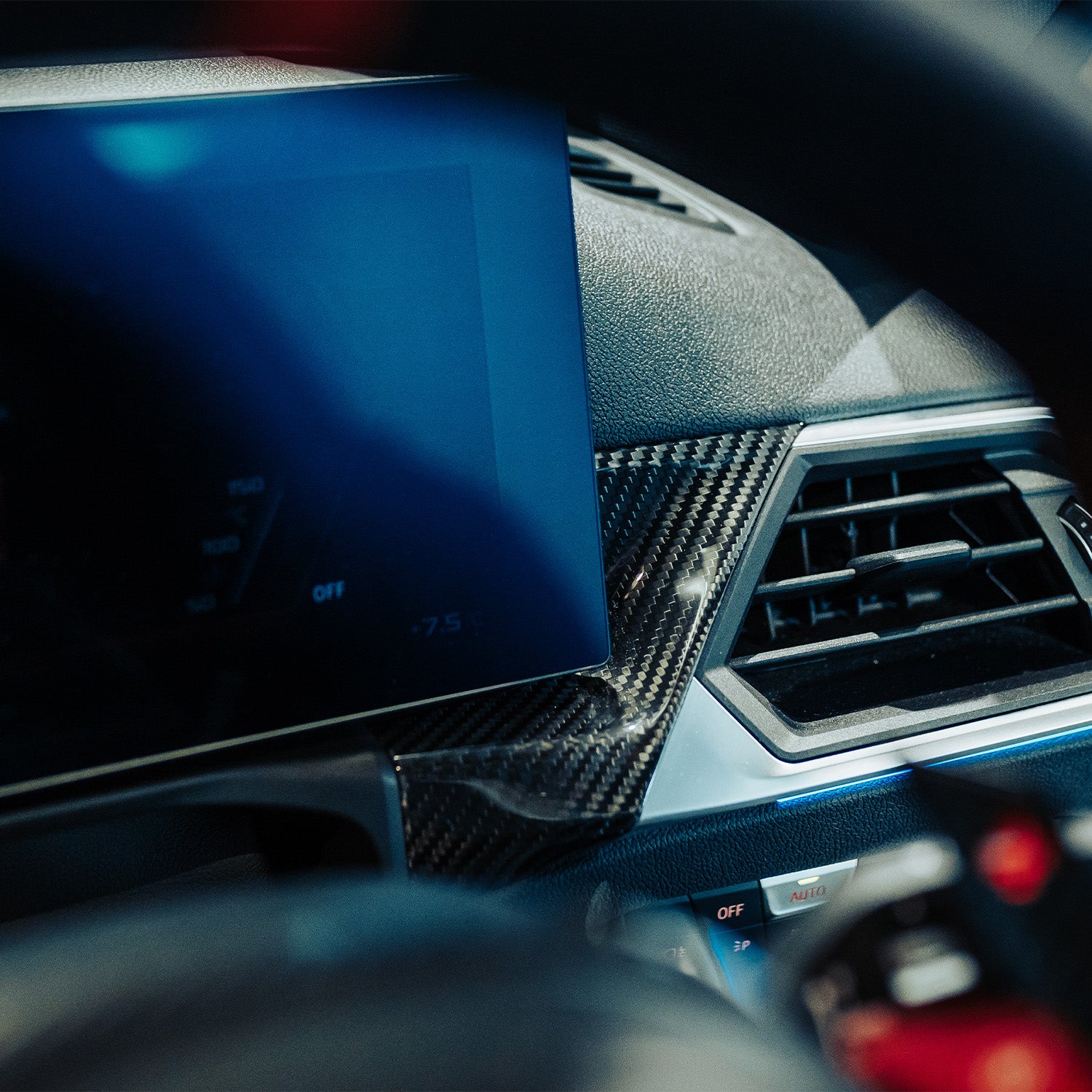 Upgrade the interior of your BMW G80 M3, G82 M4, or G87 M2 LCI with the SHFT Gloss Carbon Fibre Display Screen Trims, a stunning accessory that adds a touch of modern luxury and motorsport-inspired aesthetics to your dashboard. Precision-crafted for an exact fit, these trims transform your cabin into a sophisticated cockpit. Key Features: Genuine Carbon Fibre Construction: Made from lightweight, durable gloss carbon fibre for a high-end, performance-inspired look. Custom Fit for LCI Models: Tailored specifically for the G80 M3, G82 M4, and G87 M2 LCI models, ensuring a seamless and OEM-like finish. Refined Aesthetics: Accentuates the edges of your display screen with a sleek, glossy finish, elevating your interior’s premium feel. Durable and Long-Lasting: UV-resistant coating prevents fading, while the robust carbon fibre material resists daily wear. Effortless Installation: Designed for easy installation, providing an instant upgrade without hassle. Compatible Vehicles Fits BMW G80 M3, G82 M4, and G87 M2 LCI models. Genuine SHFT product. FOR LCI VEHICLES WITH THE WIDE CREEN DISPLAY