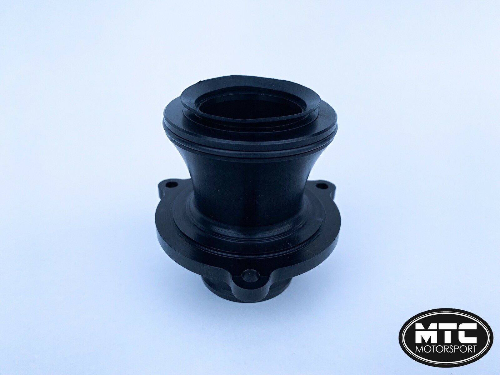 MTC Motorsport Turbo Muffler Delete 2.0 TFSI The IHI turbocharger bolted to your engine is equipped with a turbo muffler at the compressor outlet. This is designed to reduce noise from the turbocharger by using two holes cut into the side walls that create chambers. The turbulence in the chambers cause the exiting air to produce back pressure which negatively affects performance and response. The MTC muffler delete is machined from a single piece of billet aluminium and then anodised in black. It will come with new seals. This modification will provide a massive improvement to the response and torque. We have also seen some surprising power gains with just this installed. This will fit the following models perfectly with the 1.8 and 2.0 TFSI engines: (engine code EA888 only) Golf MK7 GTI and Clubsport/Clubsport S Golf R MK7 and MK7.5 Polo GTI 1.8T 2015+ Audi S1 2.0 TSI Audi S3 8V 2.0TFSI Audi A3 8V 2.0TFSI Audi A3 1.8TFSI 8V 2012+ Audi A4 2.0 TFSI Audi A5 2.0 TFSI 2012+ Audi TT/TTS 1.8TSI 2.0TSI 2014+ Seat Leon Cupra 1.8TSI 2.0TSI 2012+ Skoda Octavia VRS 5E 2013+ Skoda Octavia 2.0TSI 2013+ Skoda Octavia 1.8TSI 2013+ Fitting will take around 10 minutes and is very easy to fit.